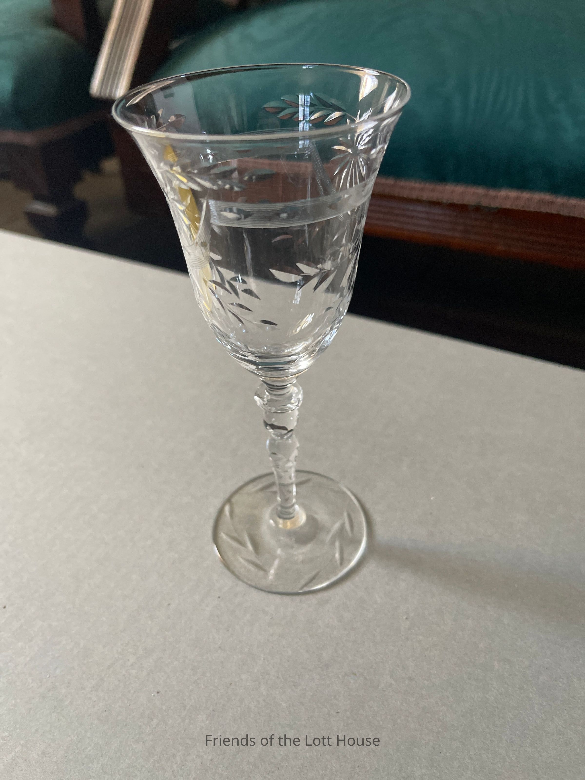 Wine glass, embossed with floral pattern