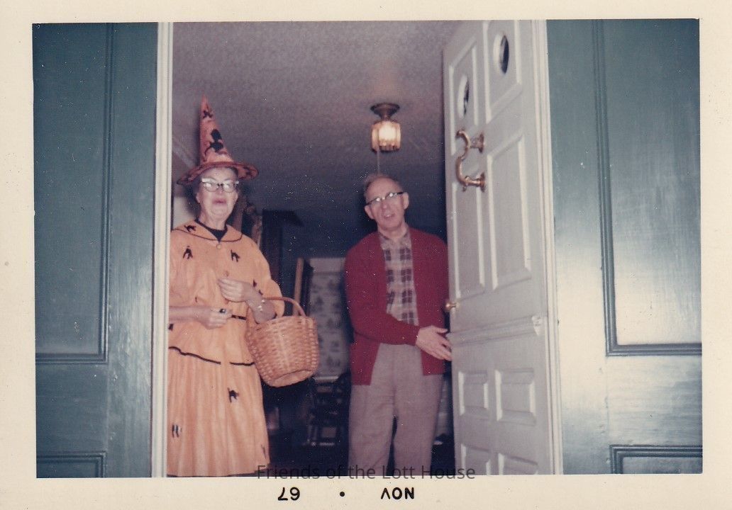 "Gertrude as witch on Halloween 1967 Curtis at door"Collection