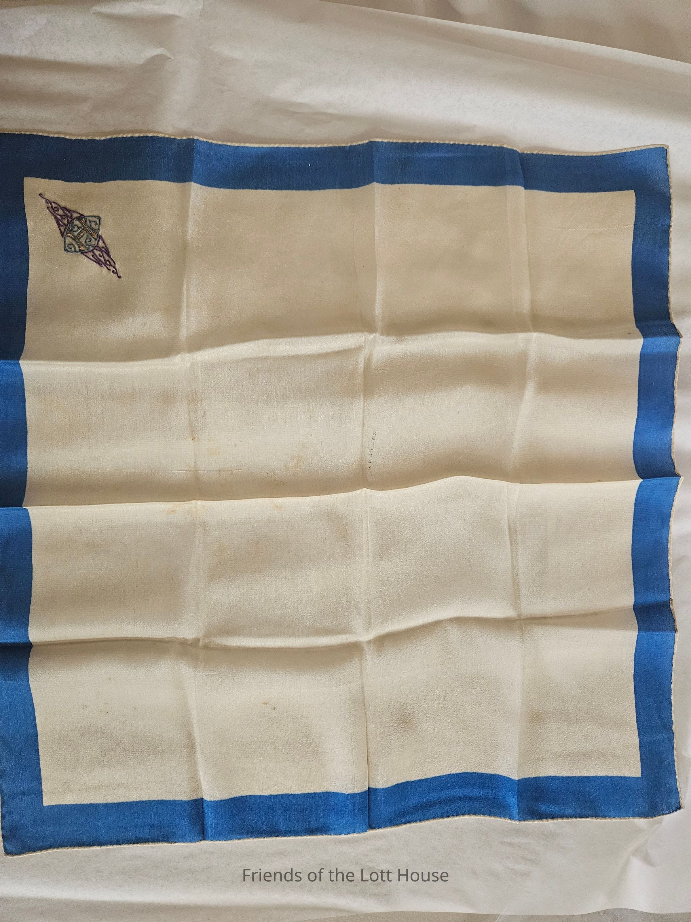 Cream with blue border. Purple/blue/gold design in one cornerCollection