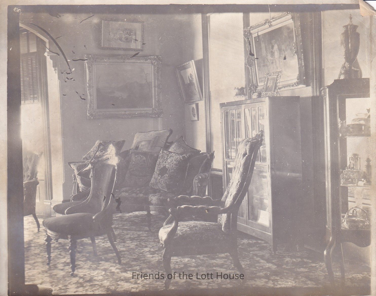 Photograph of room decorated with furniture and artwork. 60 Amersfort Pl, Brooklyn.Collection