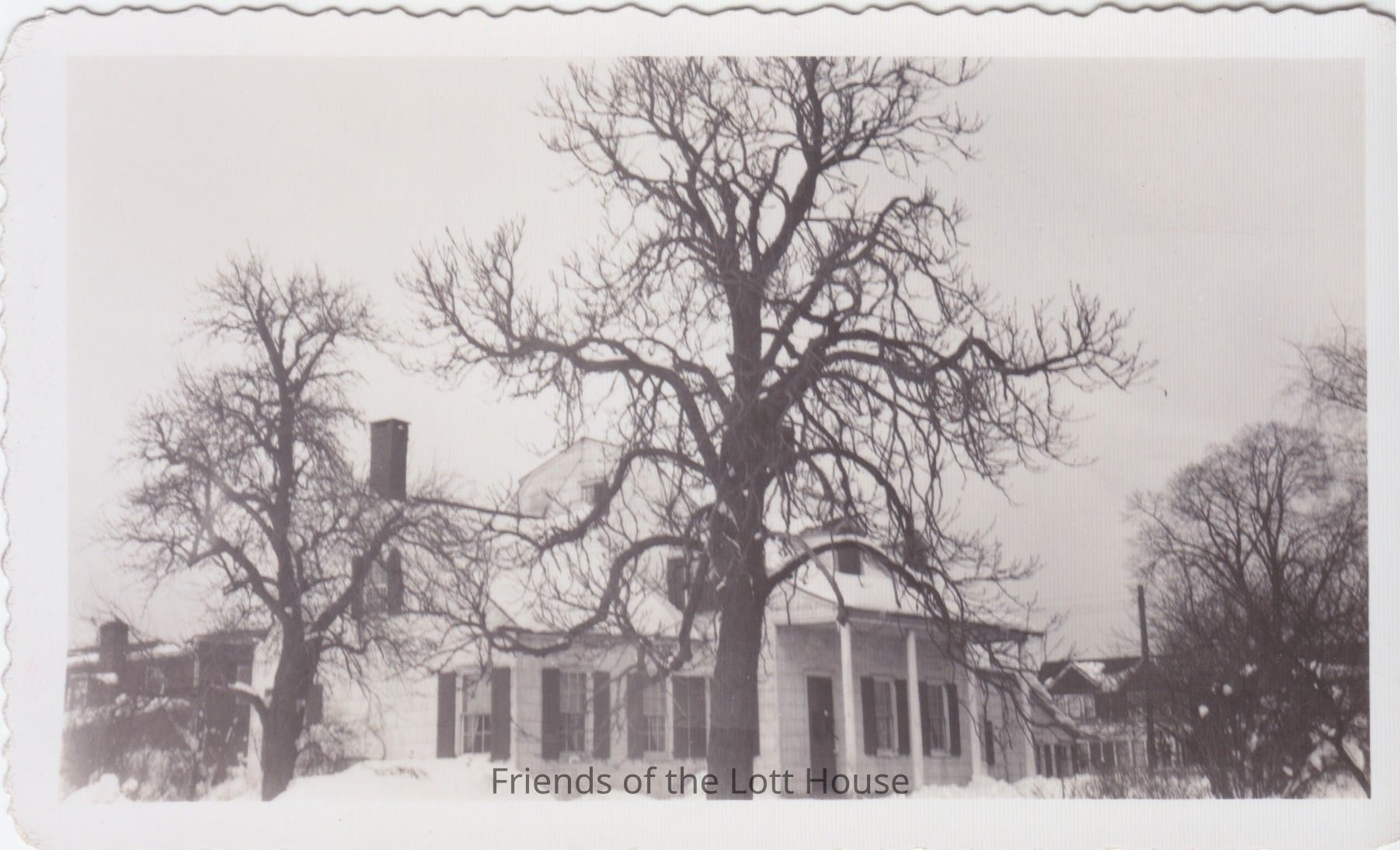 Lott House in snow, tree in foreground. Looking northeastPhotograph Details