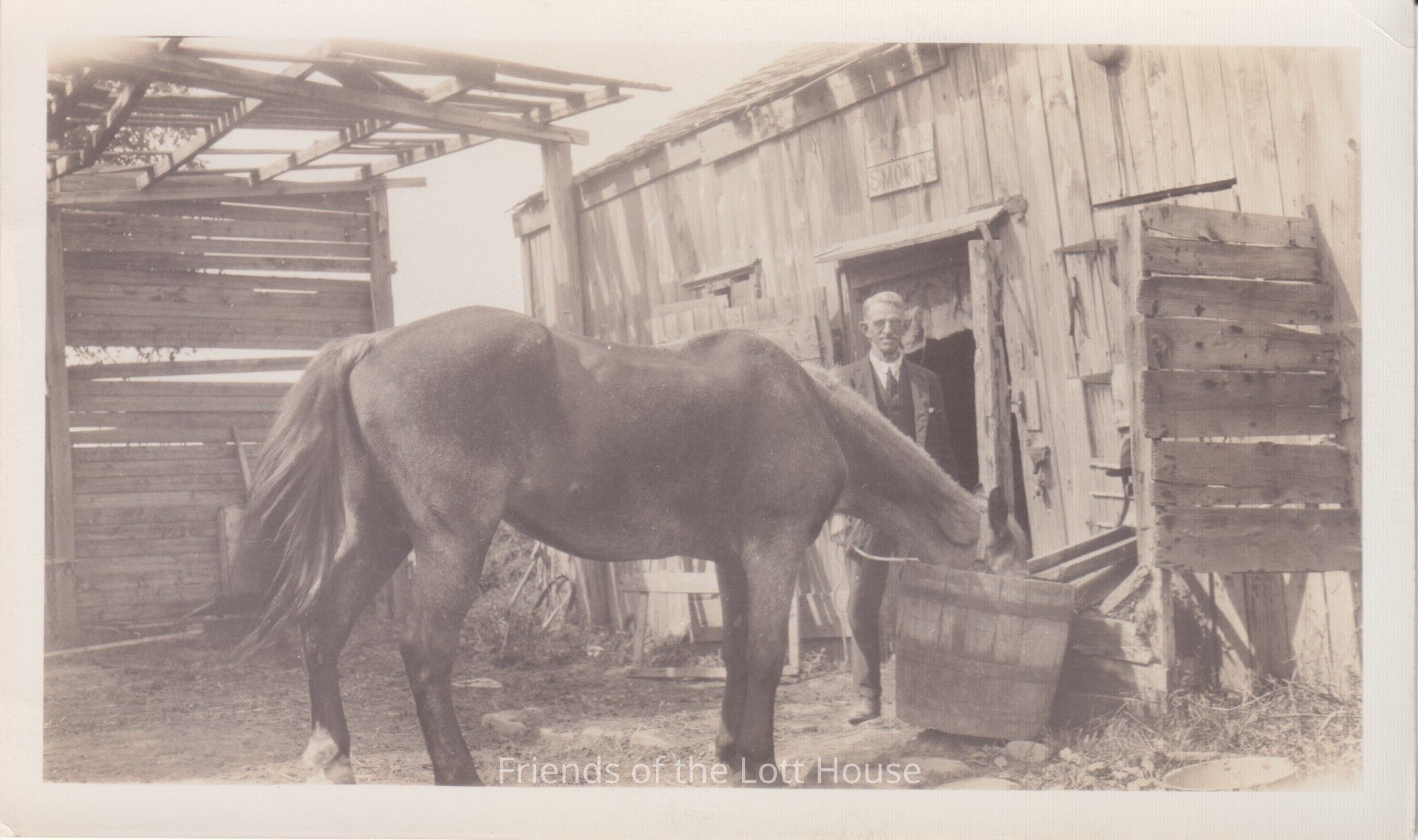 Andrew Hodges Suydam with eating horse. Pre-1926Photograph Details