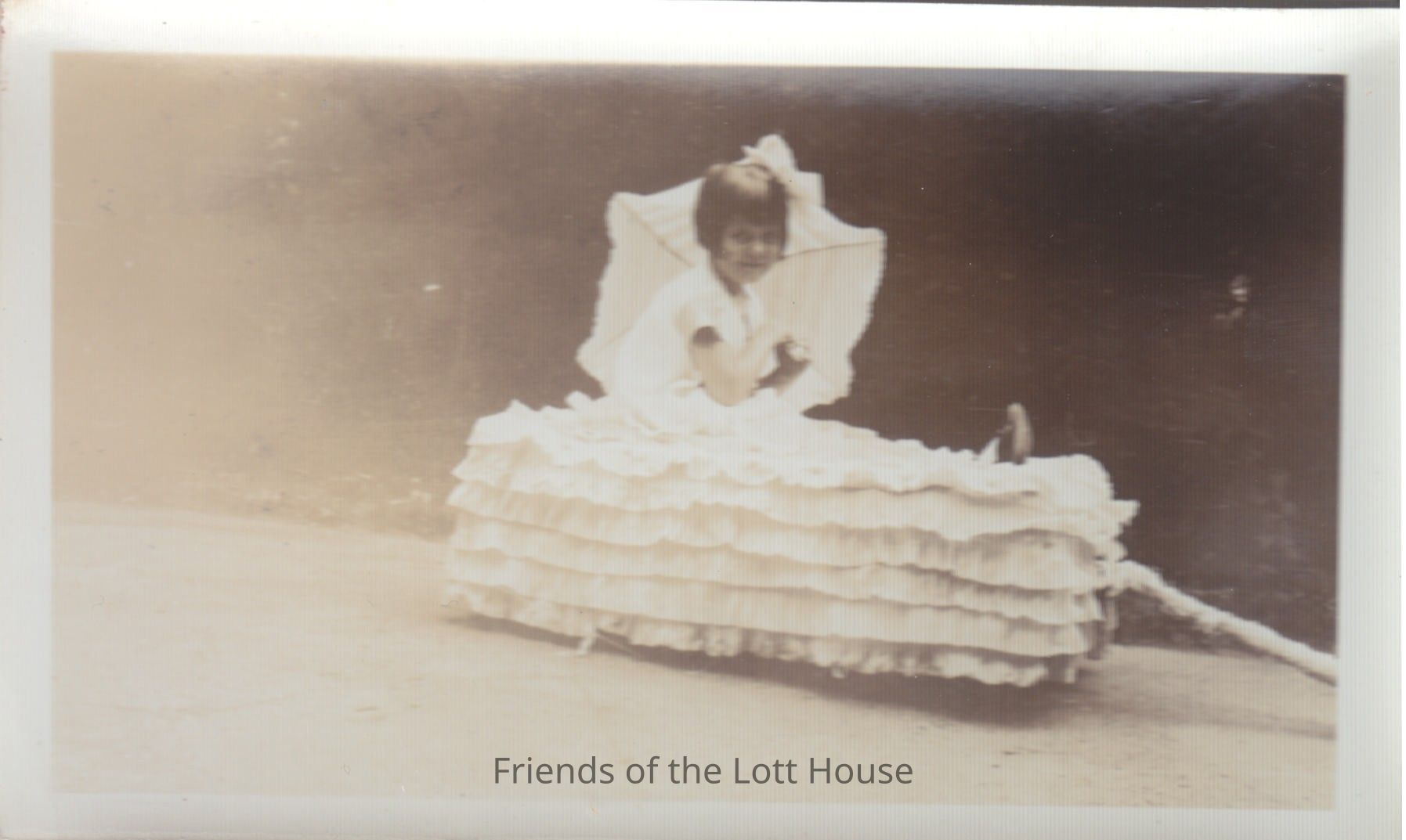 Arlene Kluth, June 1934 in decorated wagon with parasolPhotograph Details