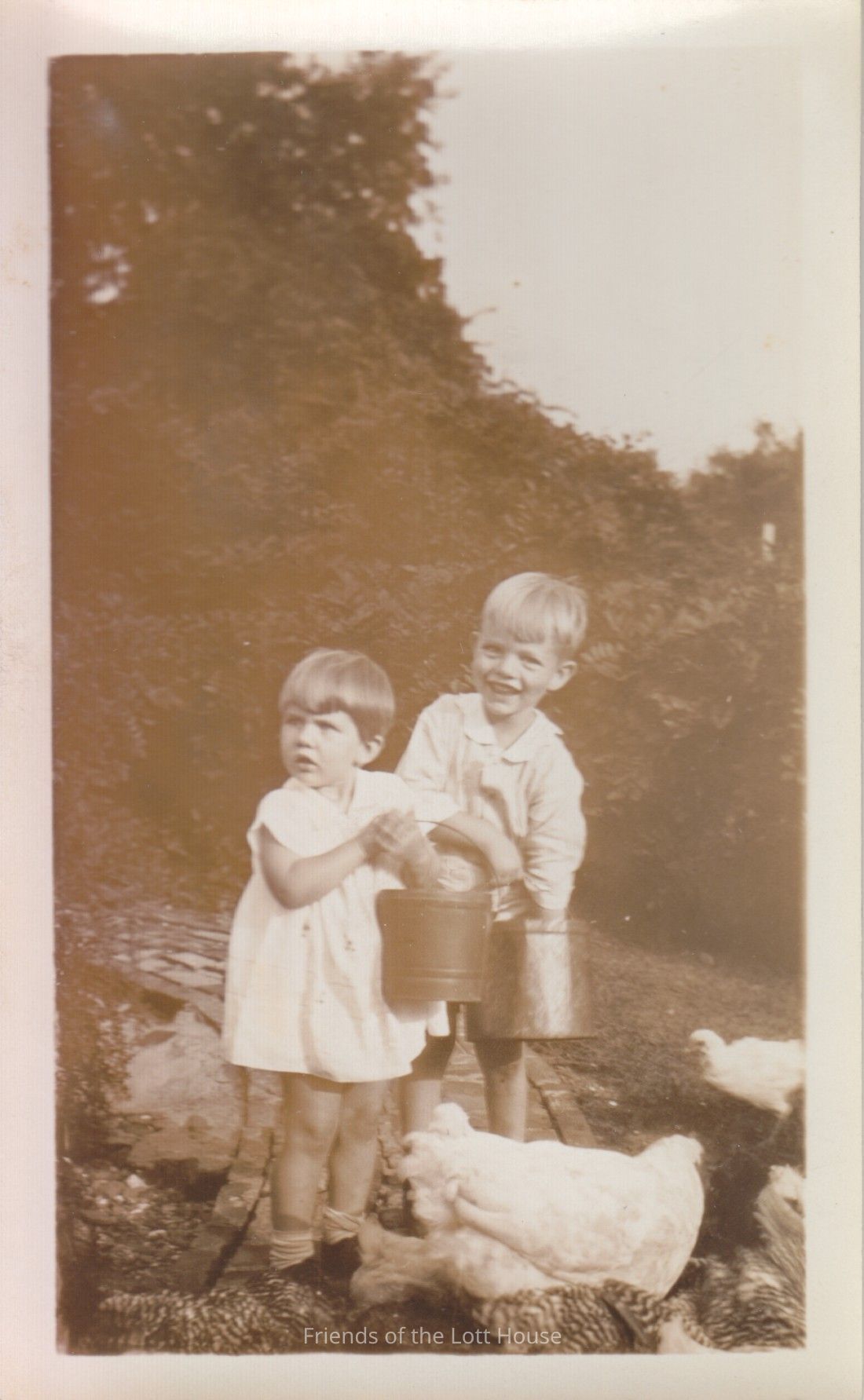 Bob and Arlene Kluth feeding chickens.Photograph Details