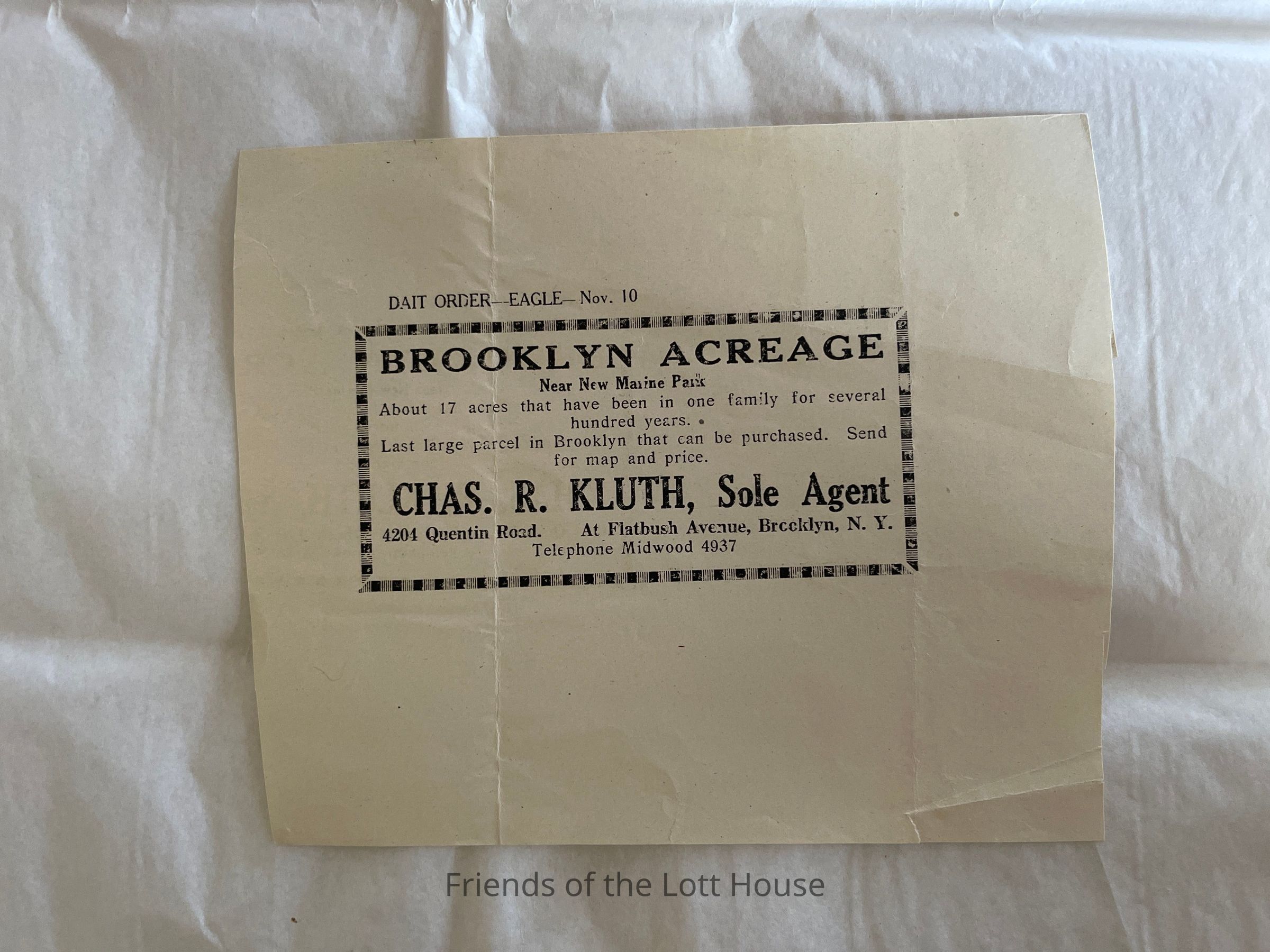 Charles Kluth Sole Agent Advertisement, November 10