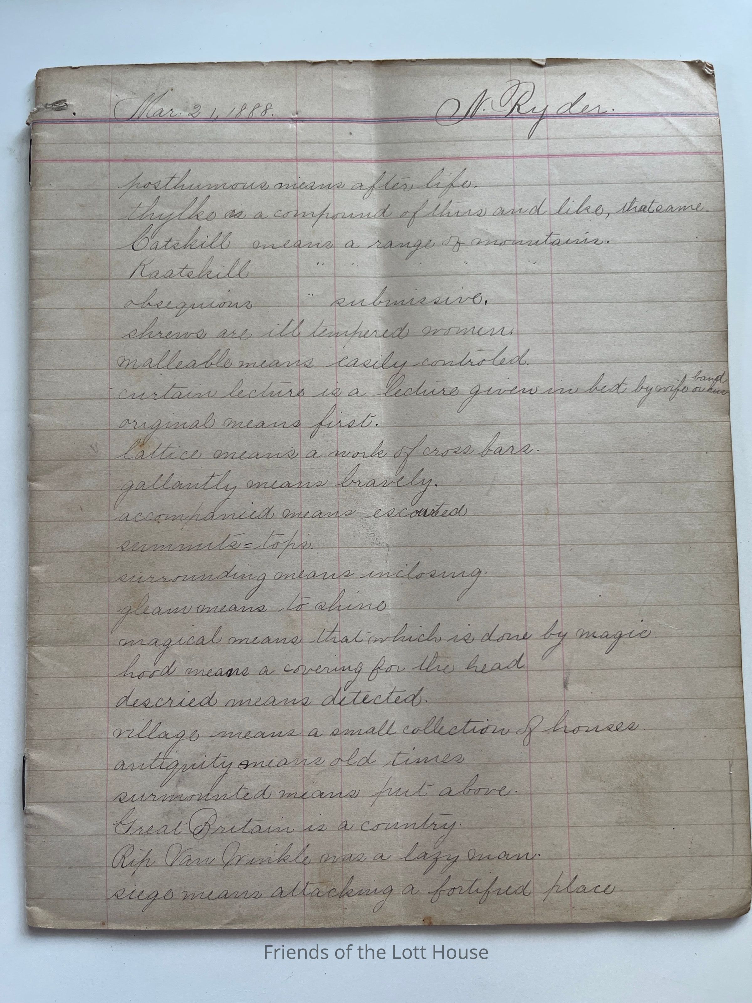 Notebook with "N.Ryder" written at top. Has writing throughout. Appears to be missing coverCollection