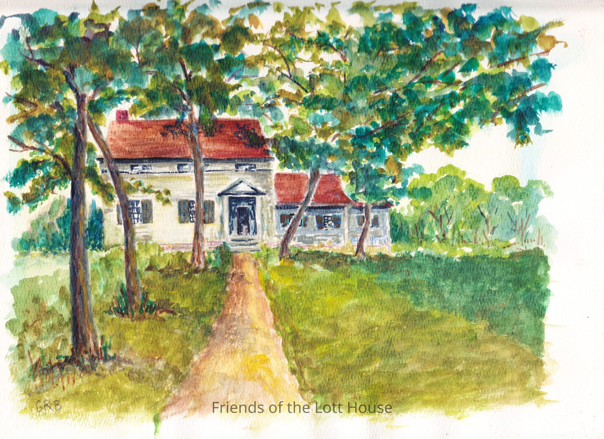 Watercolor painting of Albert Voorhees House, Gravesend Beach. Painted by Gertrude Ryder Bennett, March 1971, from a photograph. Signed GRB. Unframed.Type of Painting