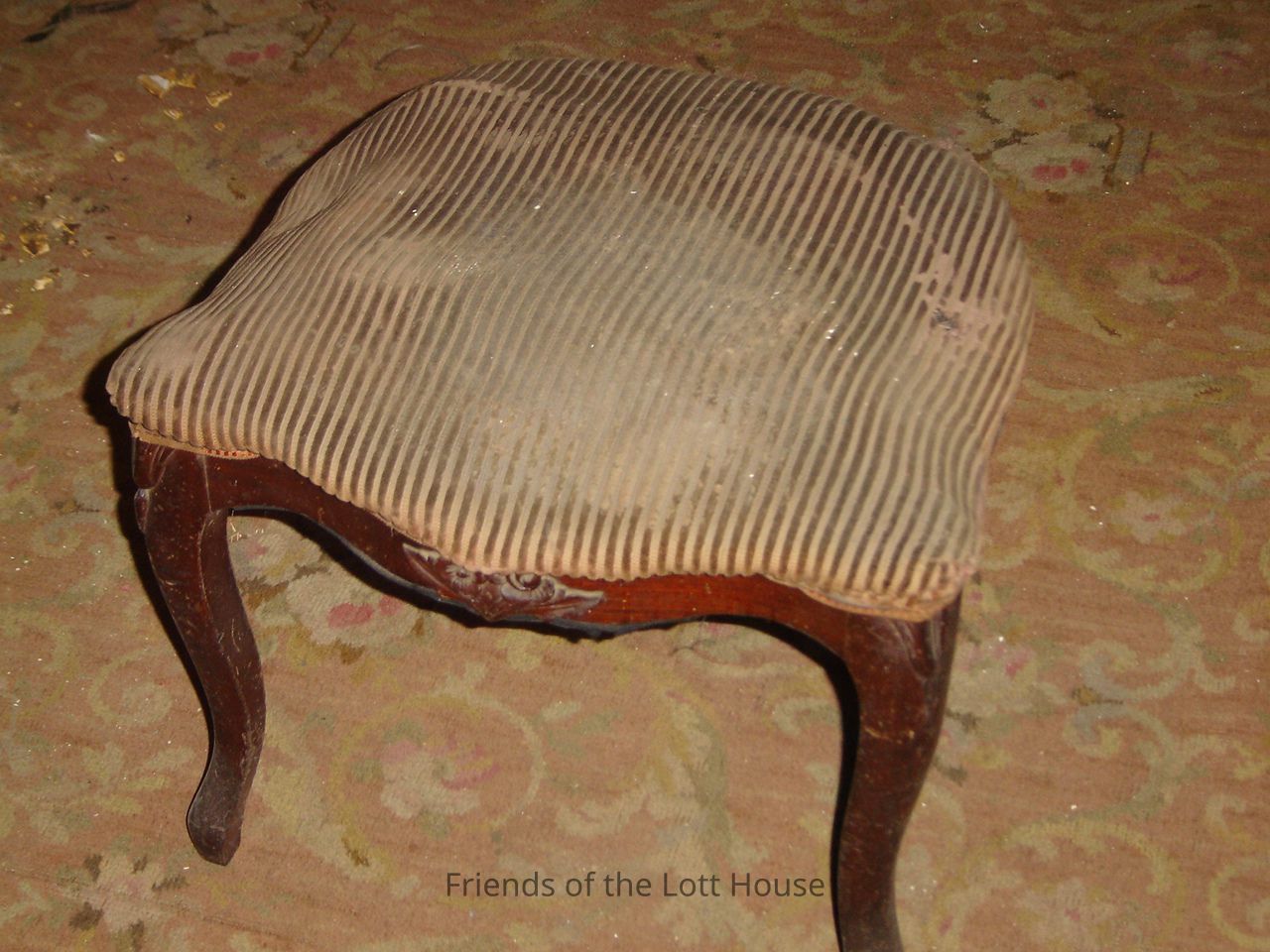 Wood chair having front cabriole legs, straight back legs, light pink fabric upholstery; detached from and without chair back Similar to LH2005.002Acquisition