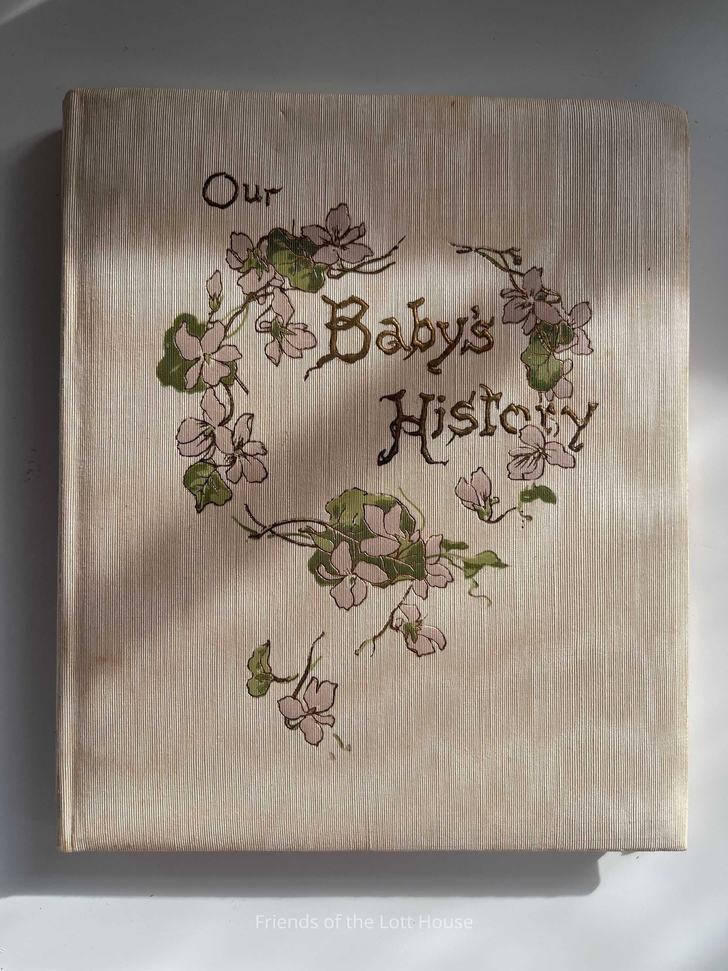 Book is mostly empty, there is a small locket of hair is glued to one of the pages.Created By