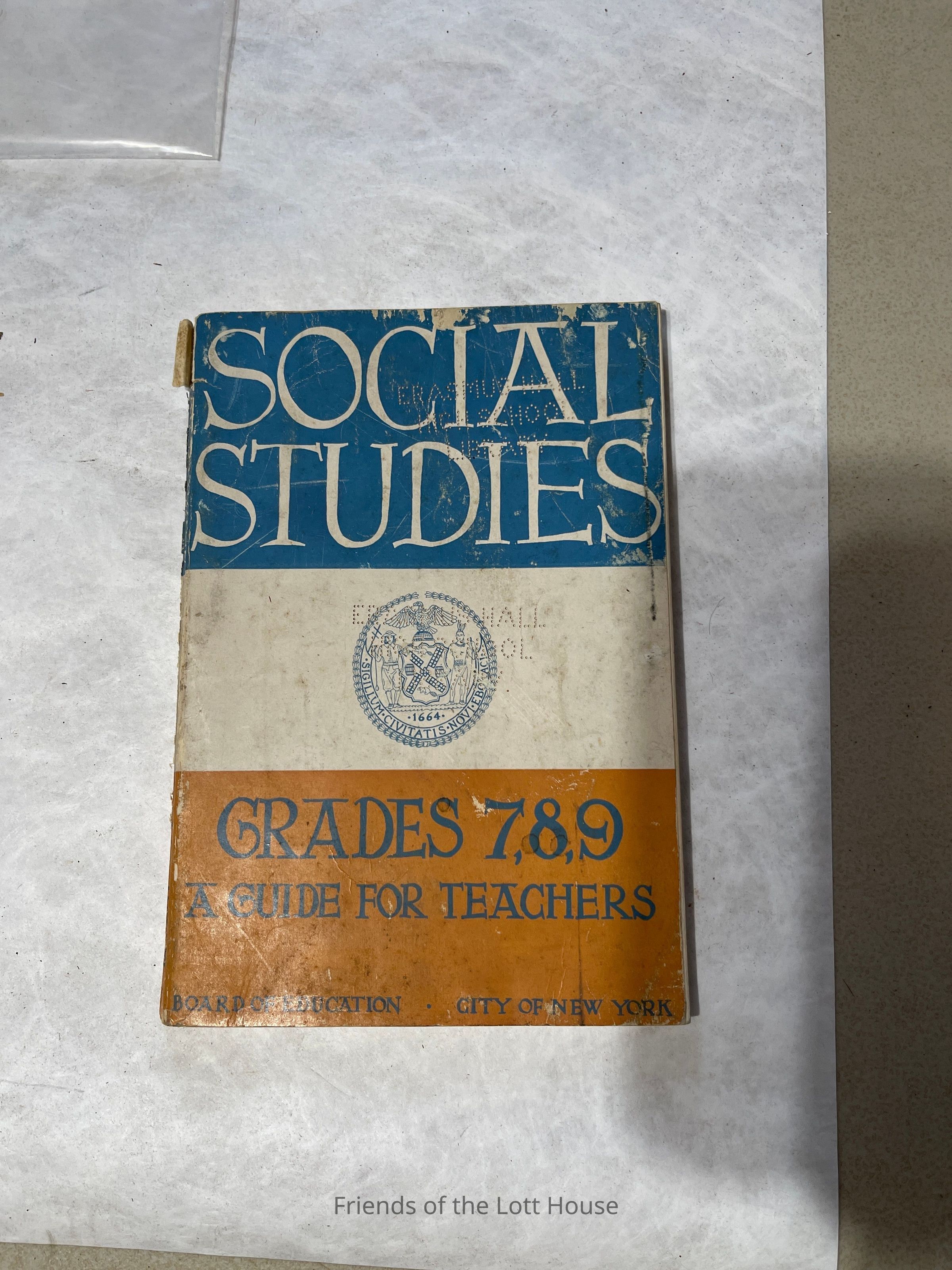 Social Studies / Grades 7, 8, and 9 / A Guide for Teachers by Board of Education, City of New York Hardcover. Book cover perforated with "Erasmus Hall Hgh School Library".Collection