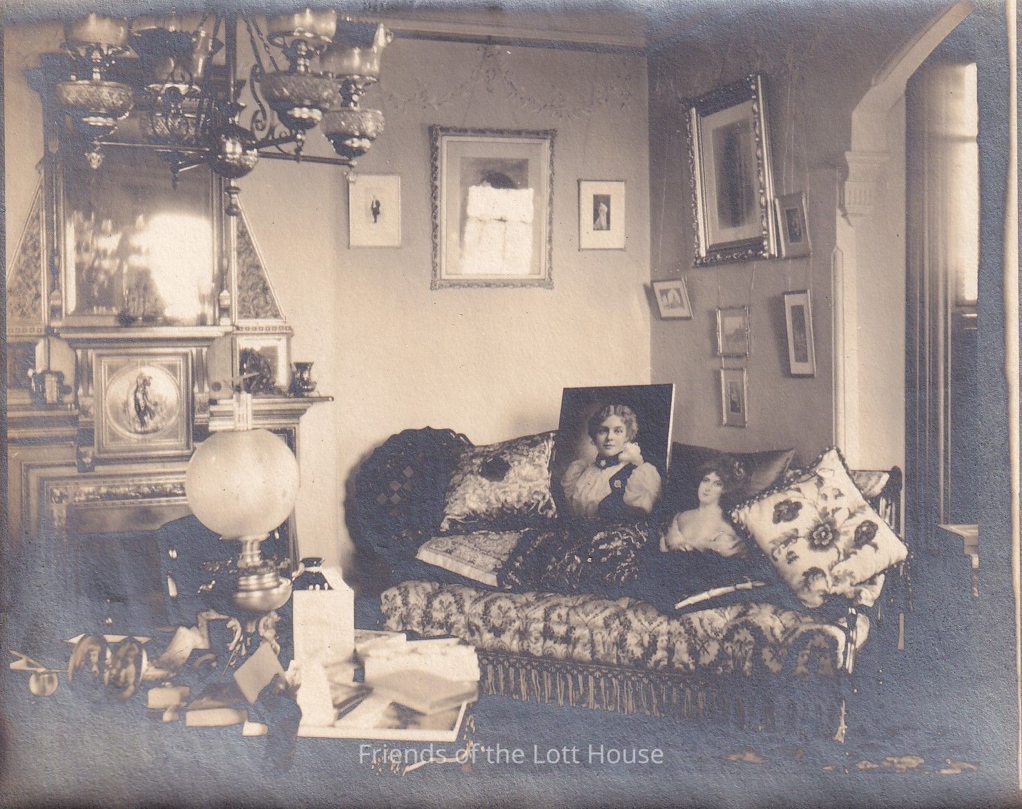 Photograph of a sitting room decorated with furniture, artwork, and light fixtures. 60 Amersfort Pl, Brooklyn.Collection