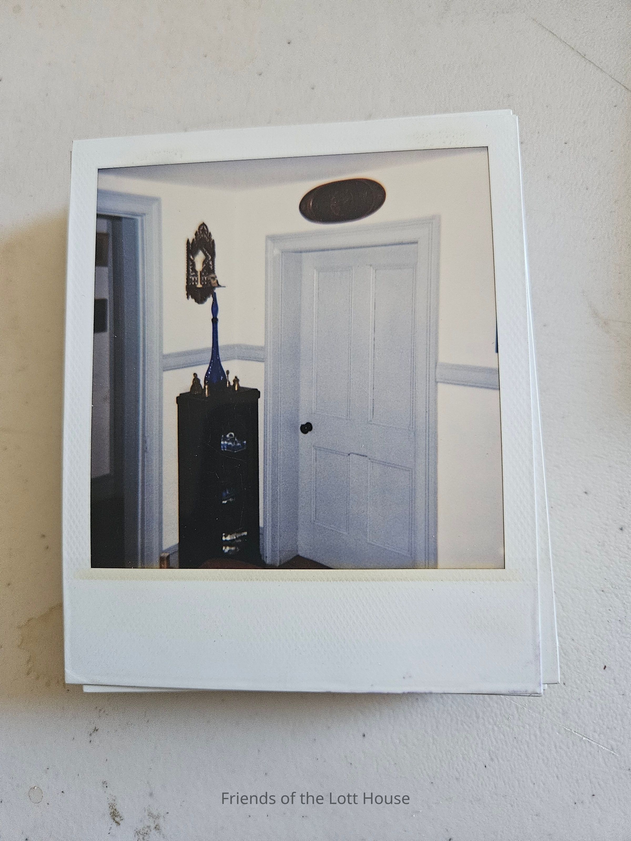 Photograph of a doorway with a cabinet and wall fixtures outside of itCollection
