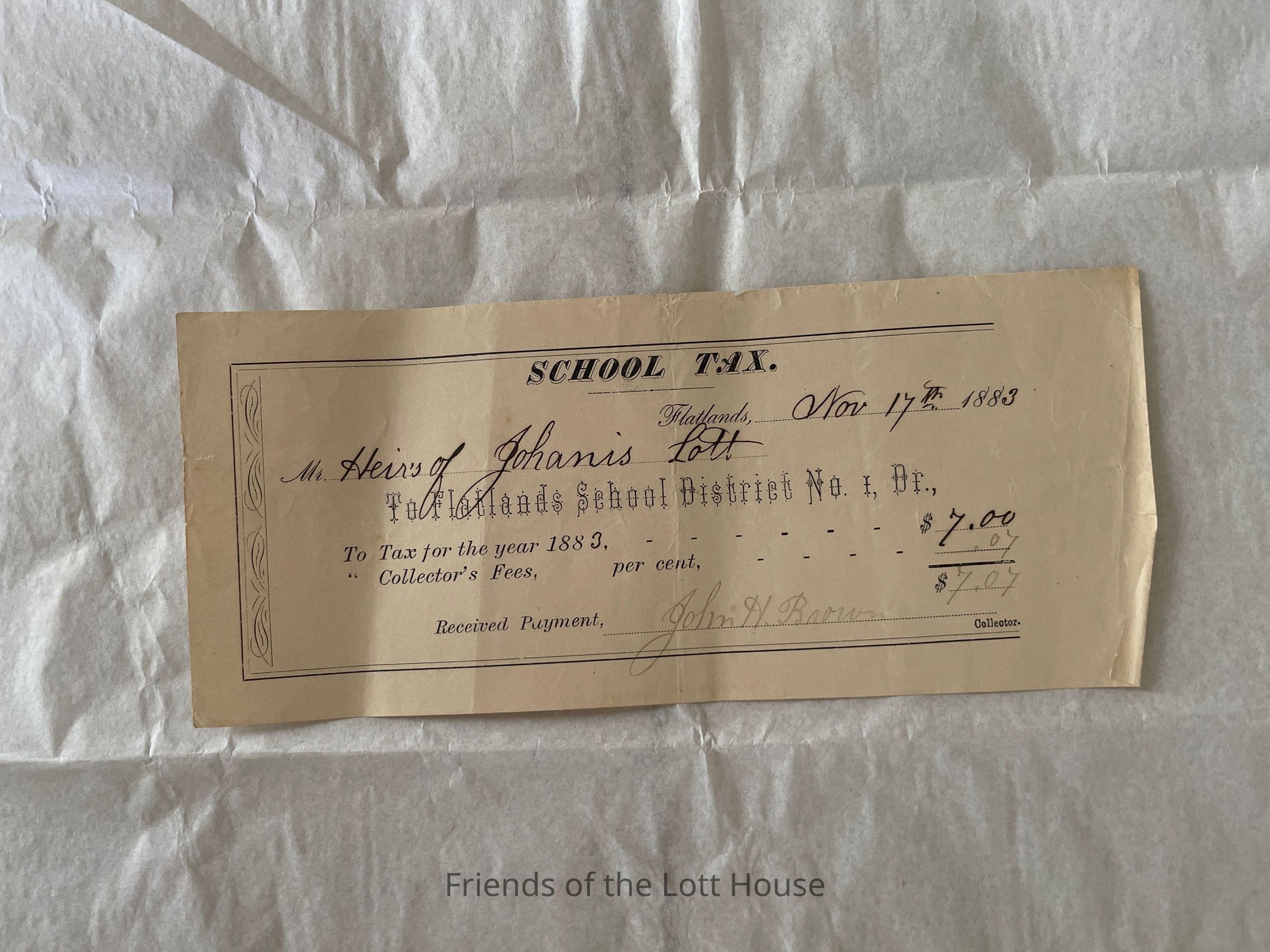 School Tax Receipts for heirs of Johanis Lott, Novemer 17, 1883