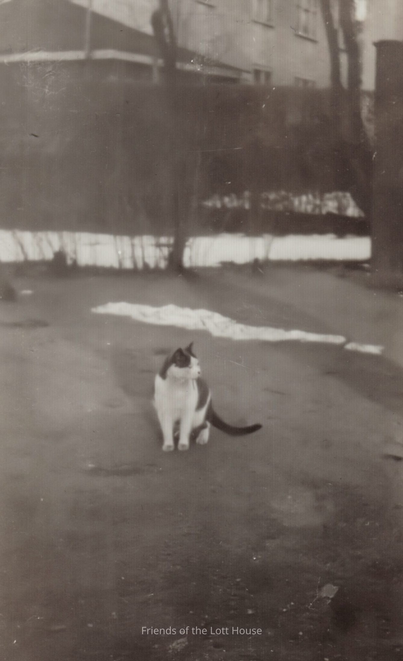 Cat sitting on lawn, looking off into the distance.Photograph Details
