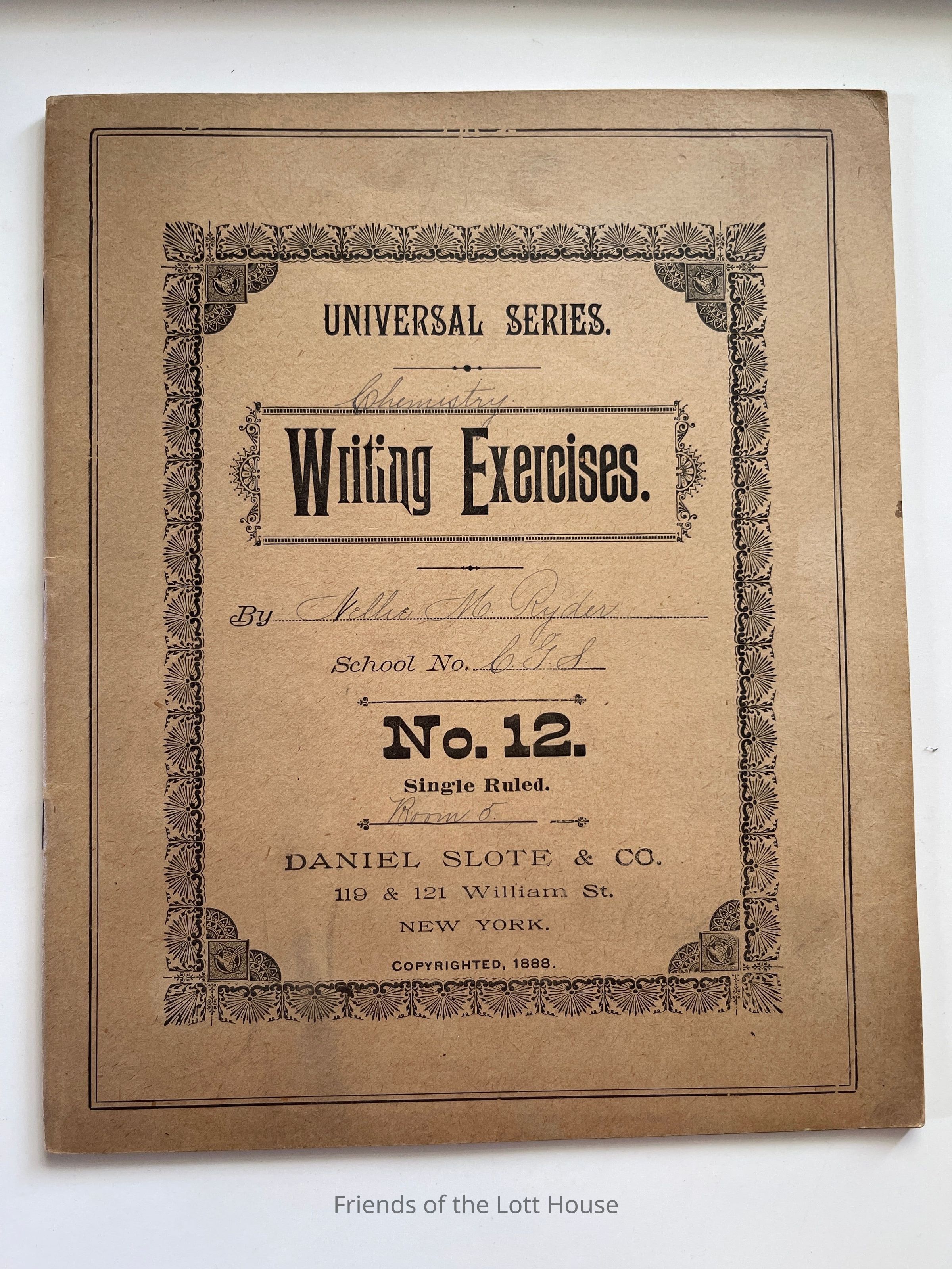 Notebook for writing exercises with Nellie Ryder's name on the coverCollection