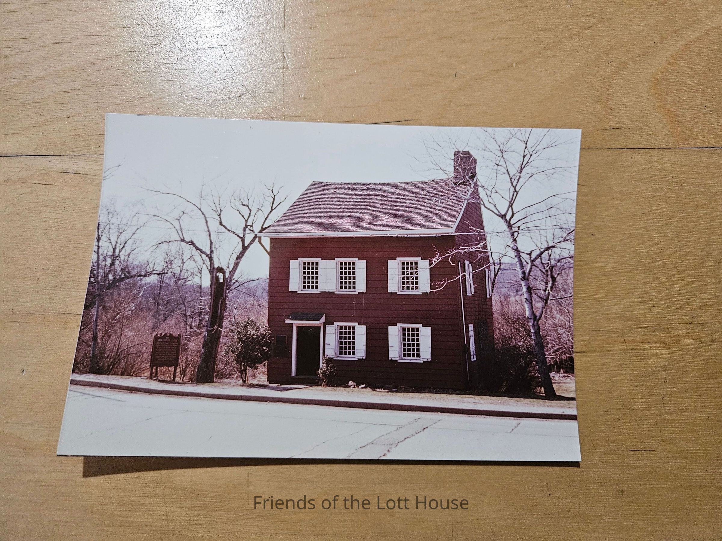 Photograph of red house labelled "Voorheezer House Richmond Rd. Richmondtown S.I." on backCollection