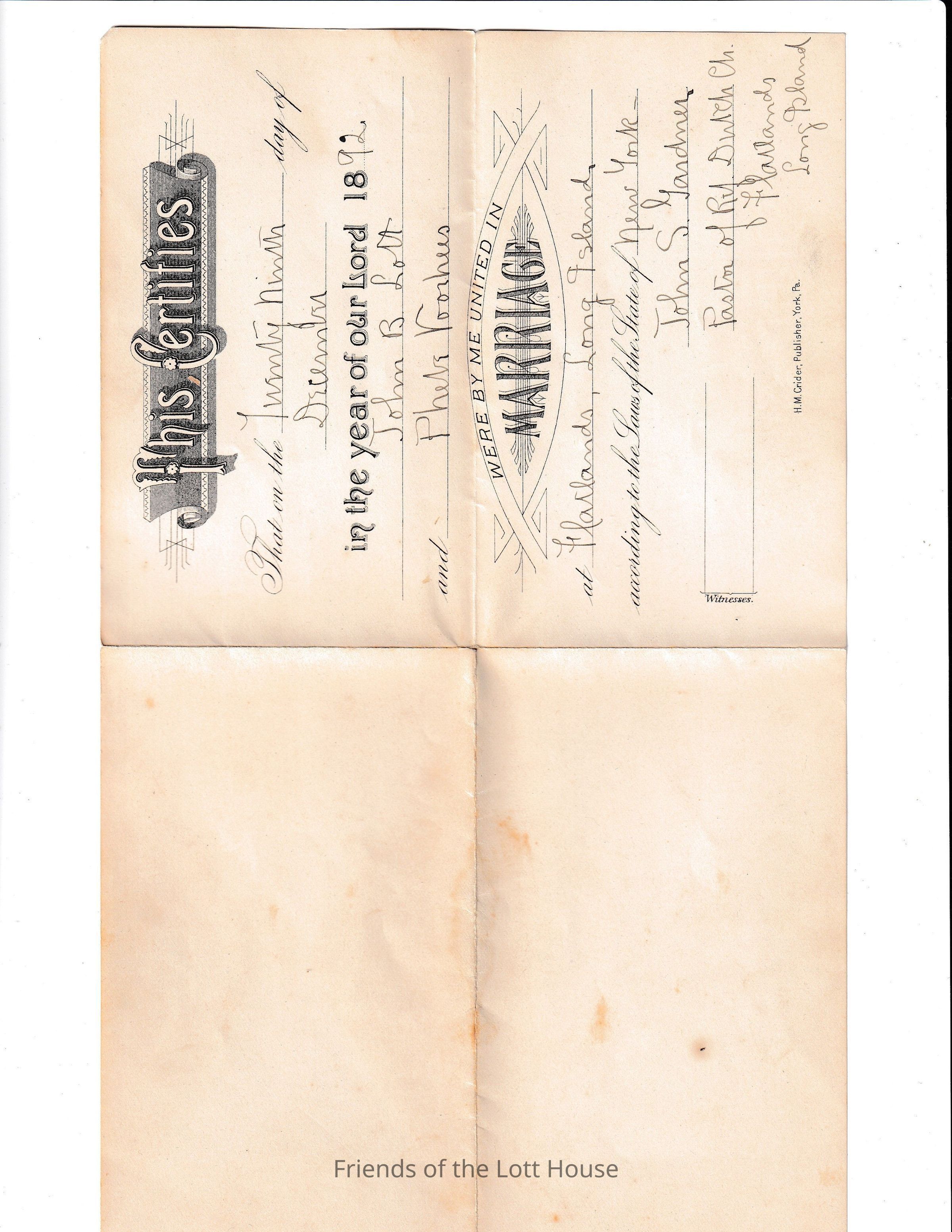 Marriage Certificate, John B Lott and Phebe VoorheesCollection
