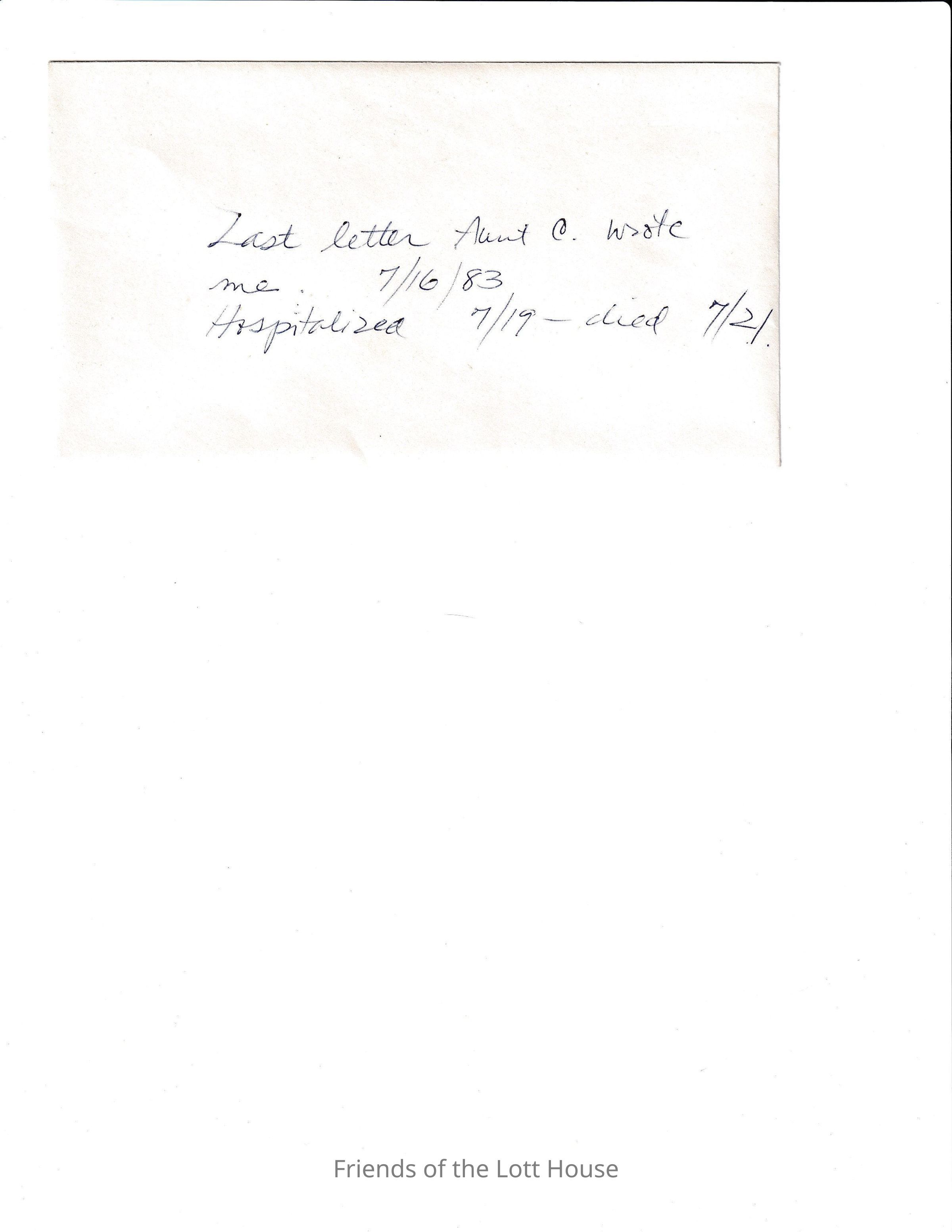 Last letter Aunt C. wrote me; 7/16/83 (a: envelope; b: letter)Collection