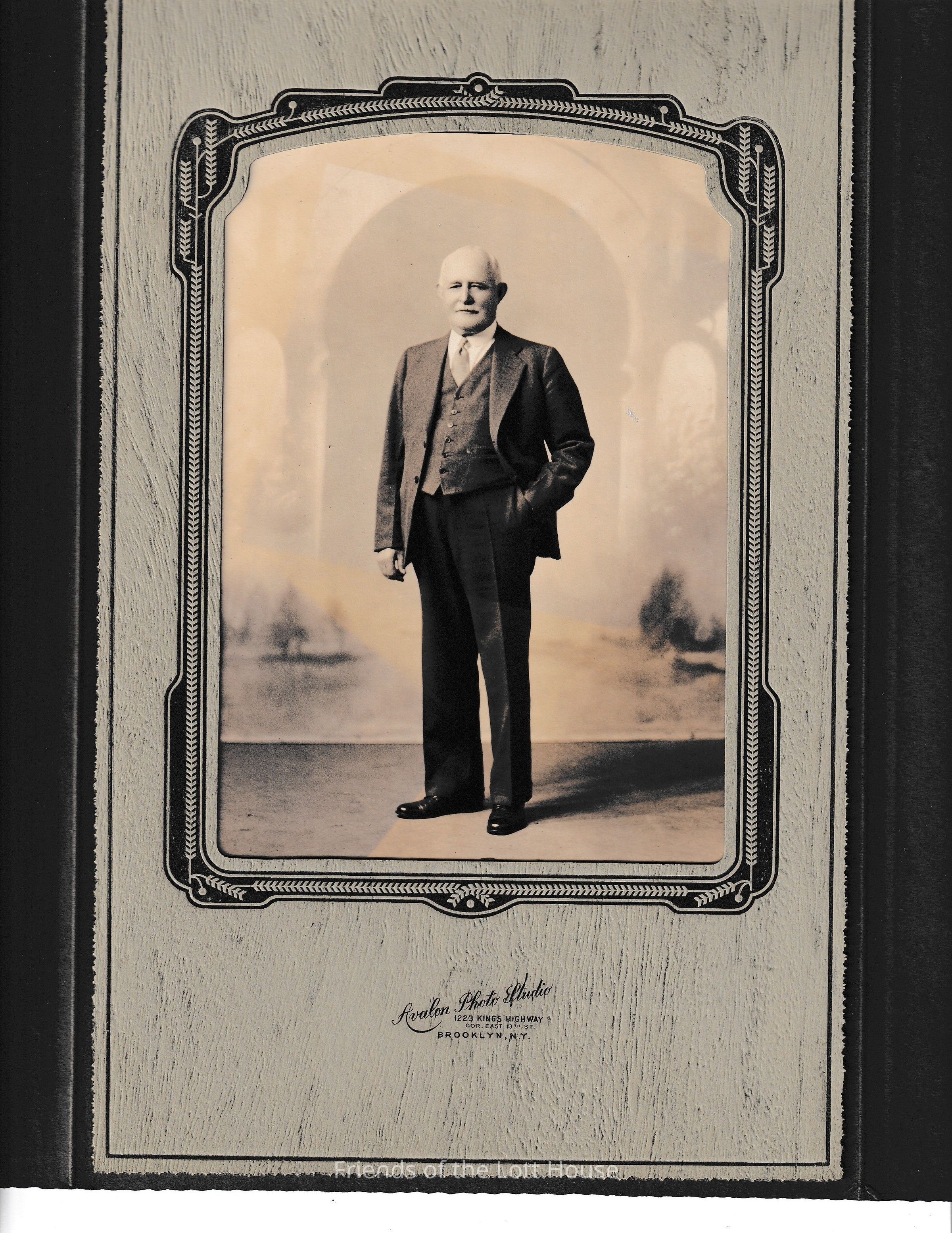 Photograph of lone male taken in Avalon Photo Studio in 1223 Kings Highway Cor. East 13th St Brooklyn N.Y.Collection