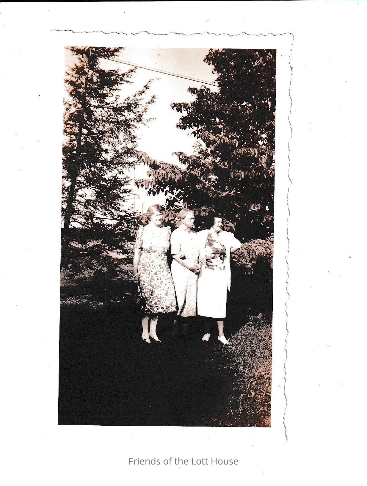 Photograph of three women posing in front of a group of treesCollection