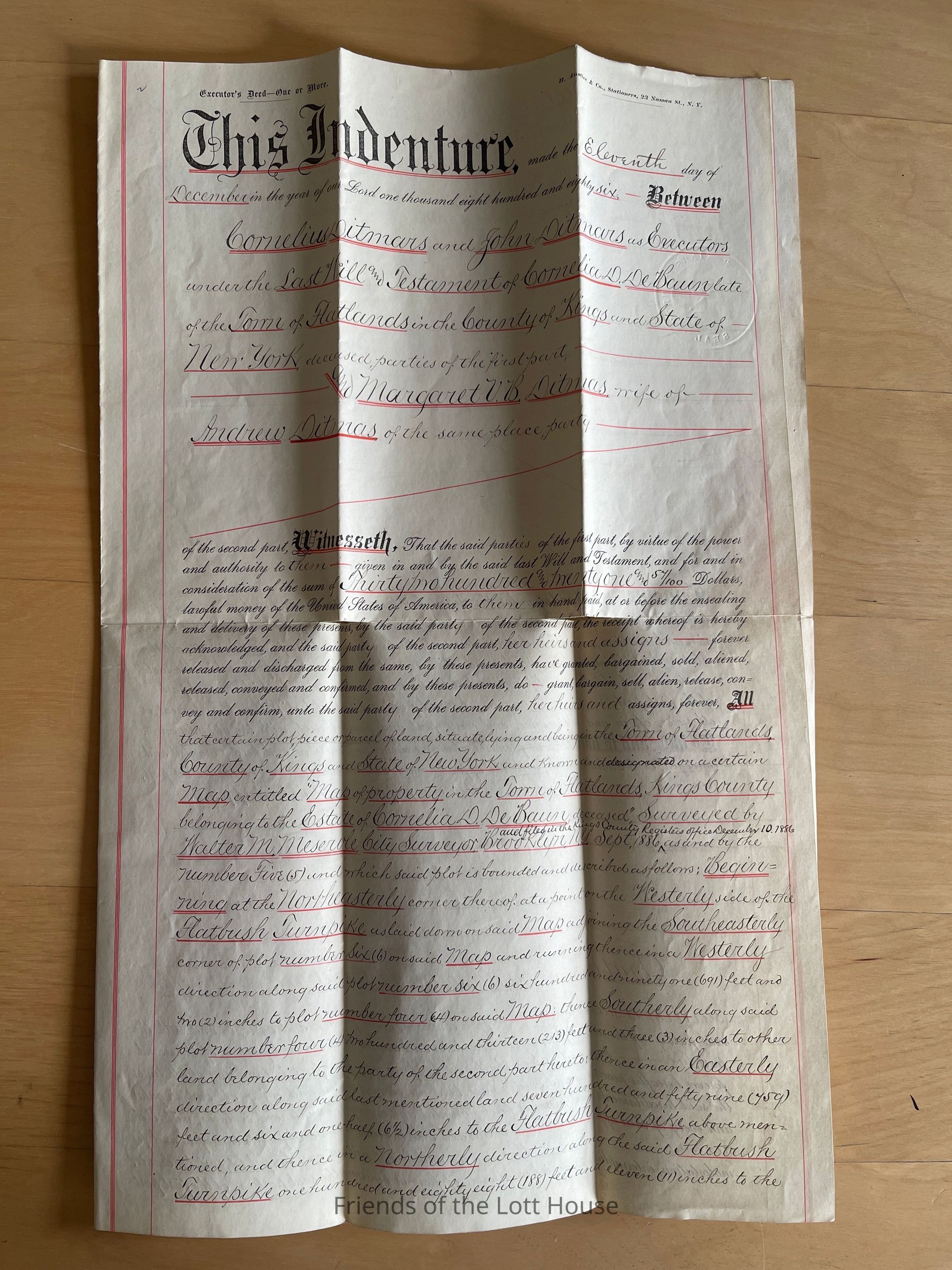 Cornelius Ditmas and John Ditmas, as executors to Margaret V.B. Ditmas, December 11, 1886Collection