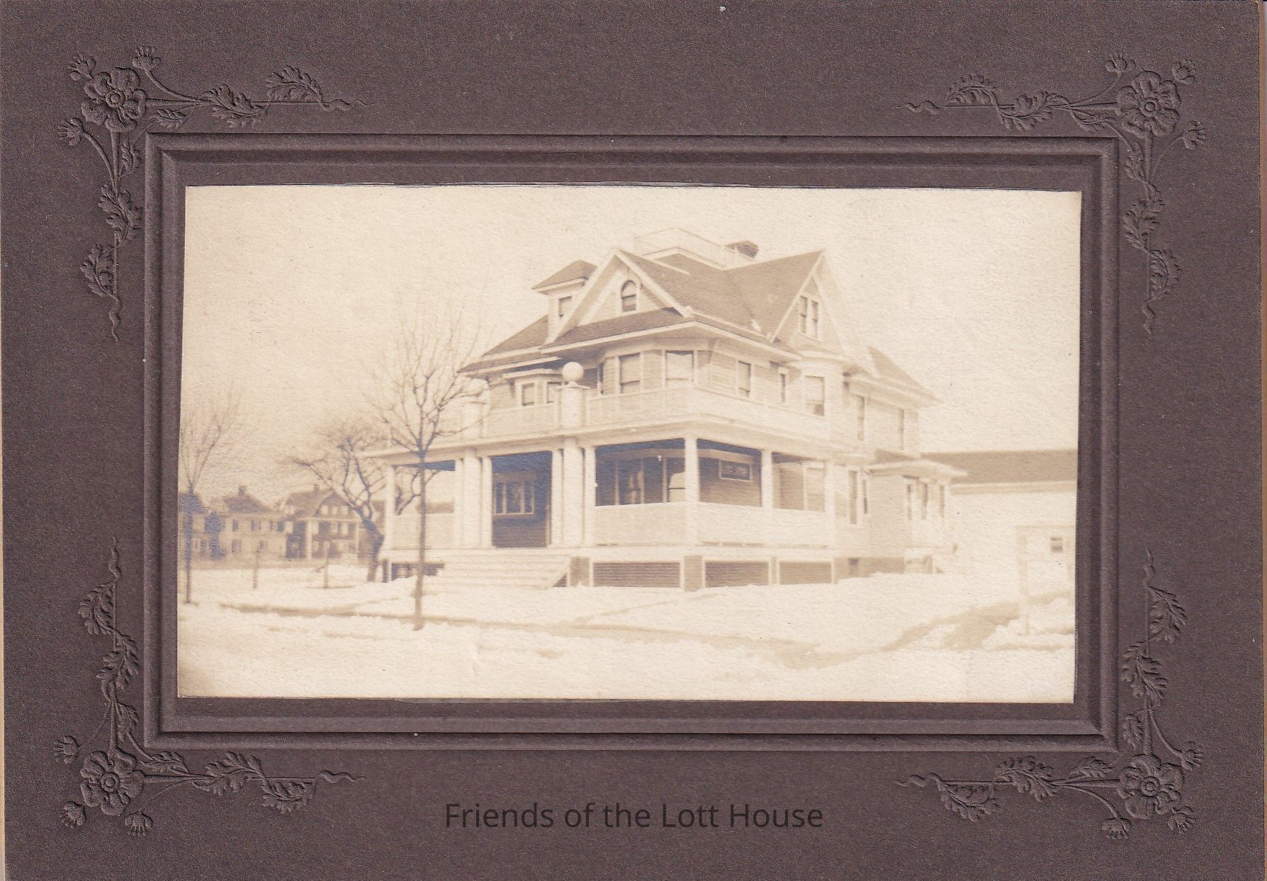Photo of house taken from the front yard with snow on ground. FramedCollection