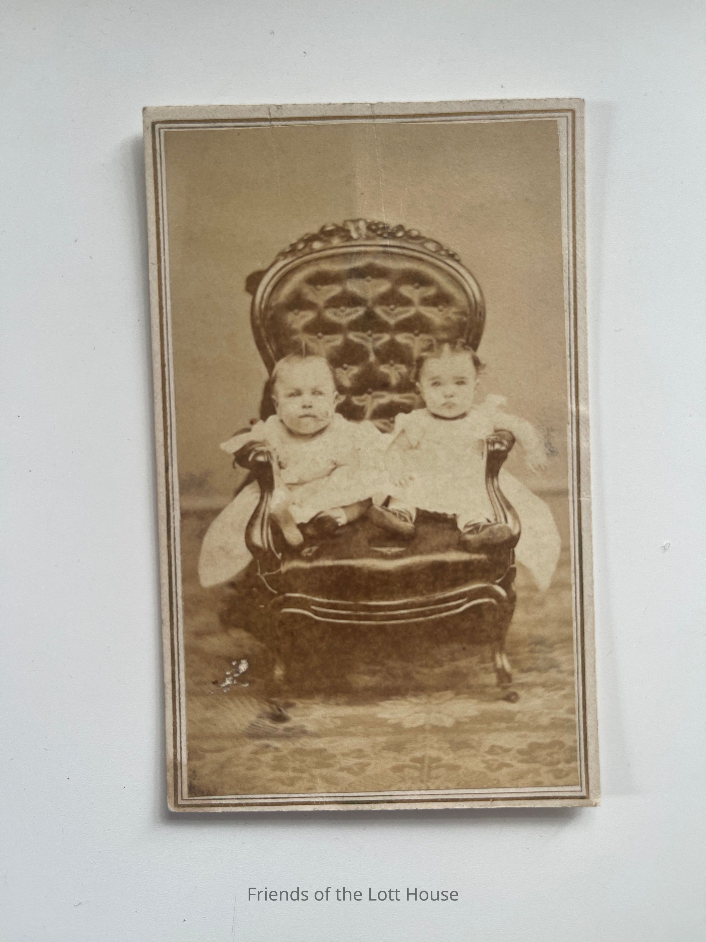 Photograph of twins on a couch. Annie Suydam and John Suydam, TwinsCollection