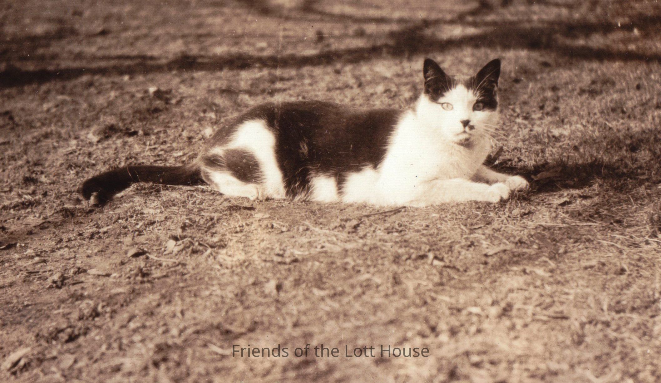 Photograph of cat laying down in the dirt.Photograph Details