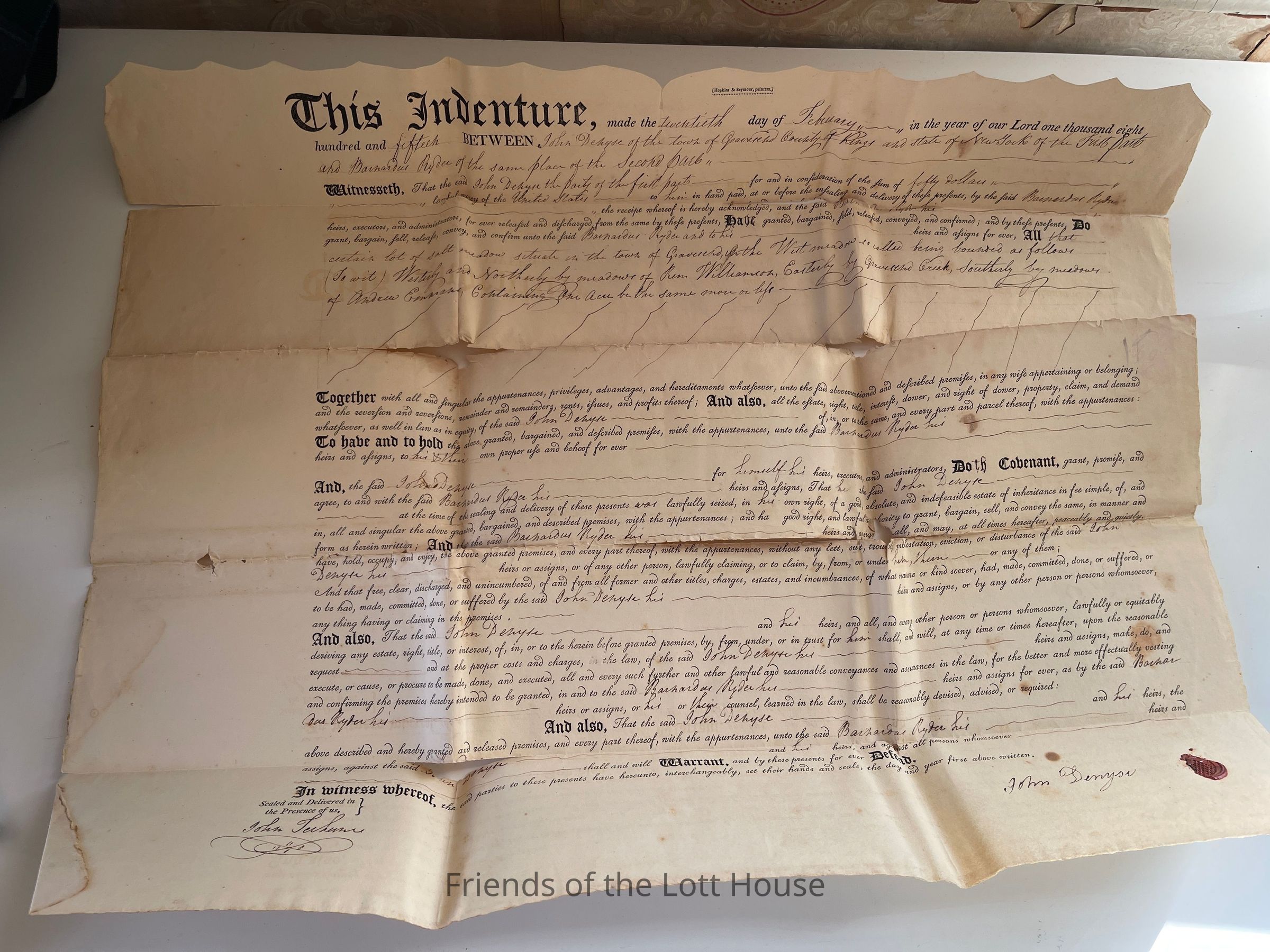 Indenture, February 20, 1815 John Denyse and Barardus RyderCollection