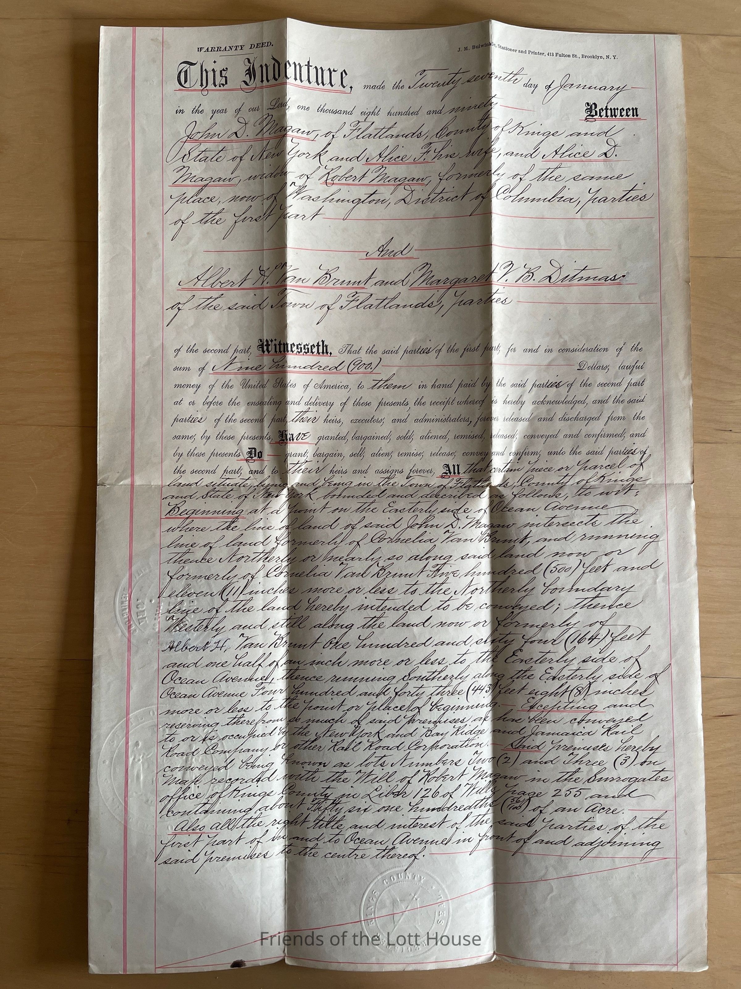 John D. McGraw and wife and Alice D. McGraw to Albert H. Van Brunt and Margaret V.B. Ditmas, January 27, 1890Collection