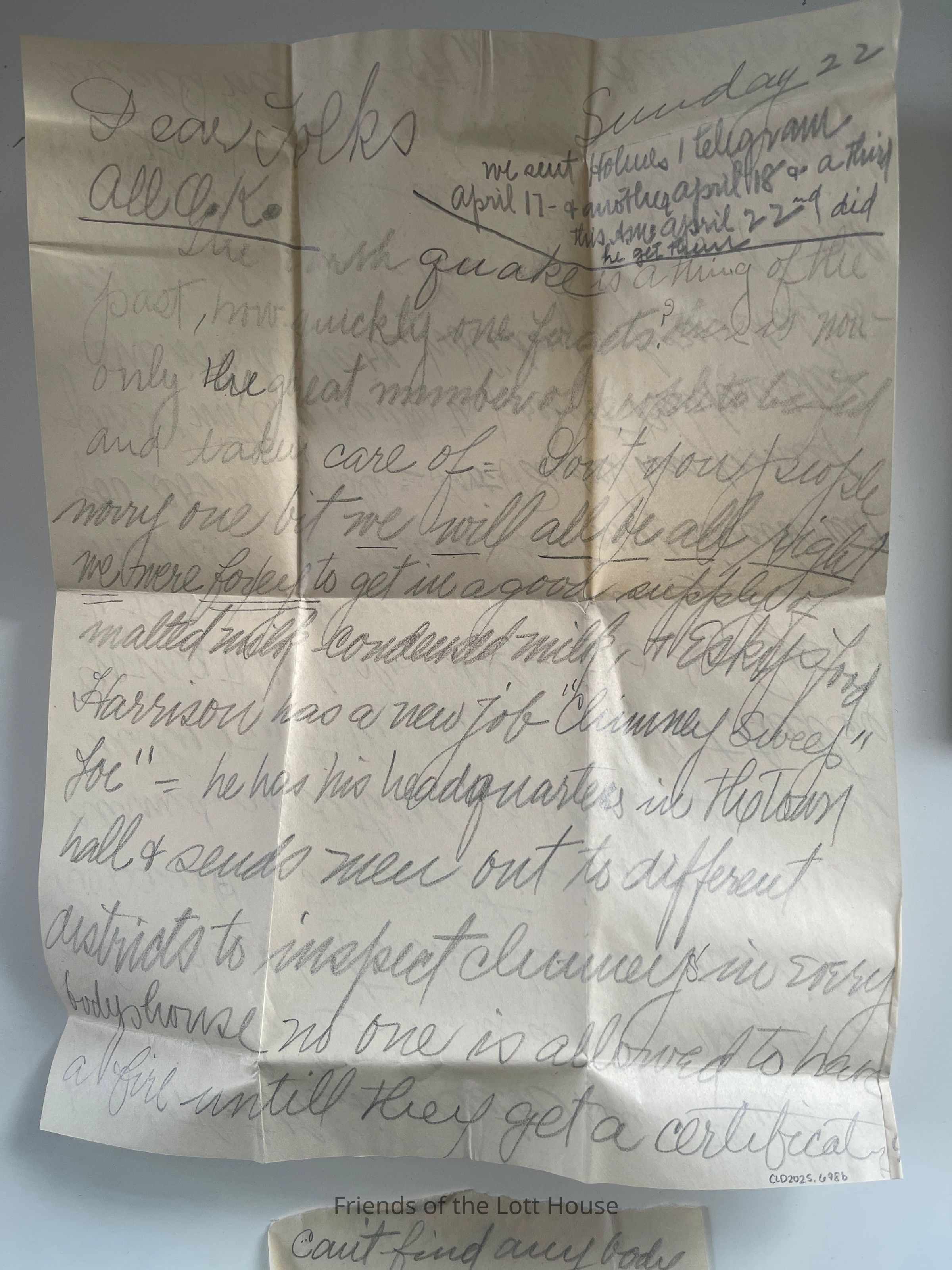 Letter from Harrison (Berkley CA) to Mr and Mrs. Andrew Ditmas April 1906Collection