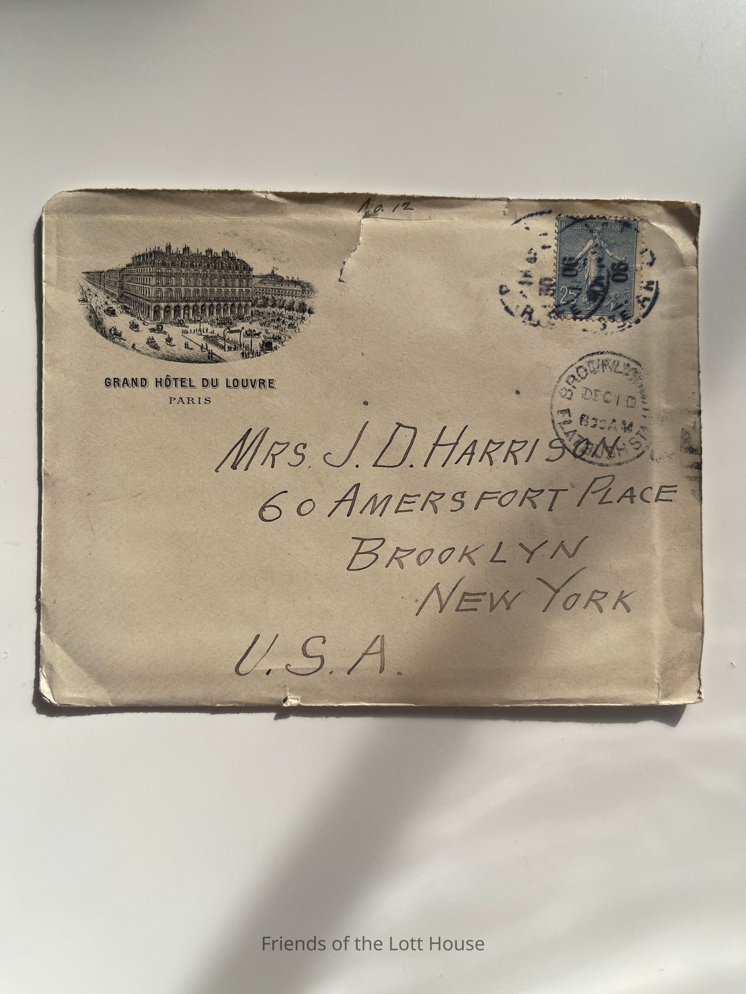 Letter to Mrs. J D Harrison from JDH Grant Hotel du Louvre, Paris, November 29. 1906Collection