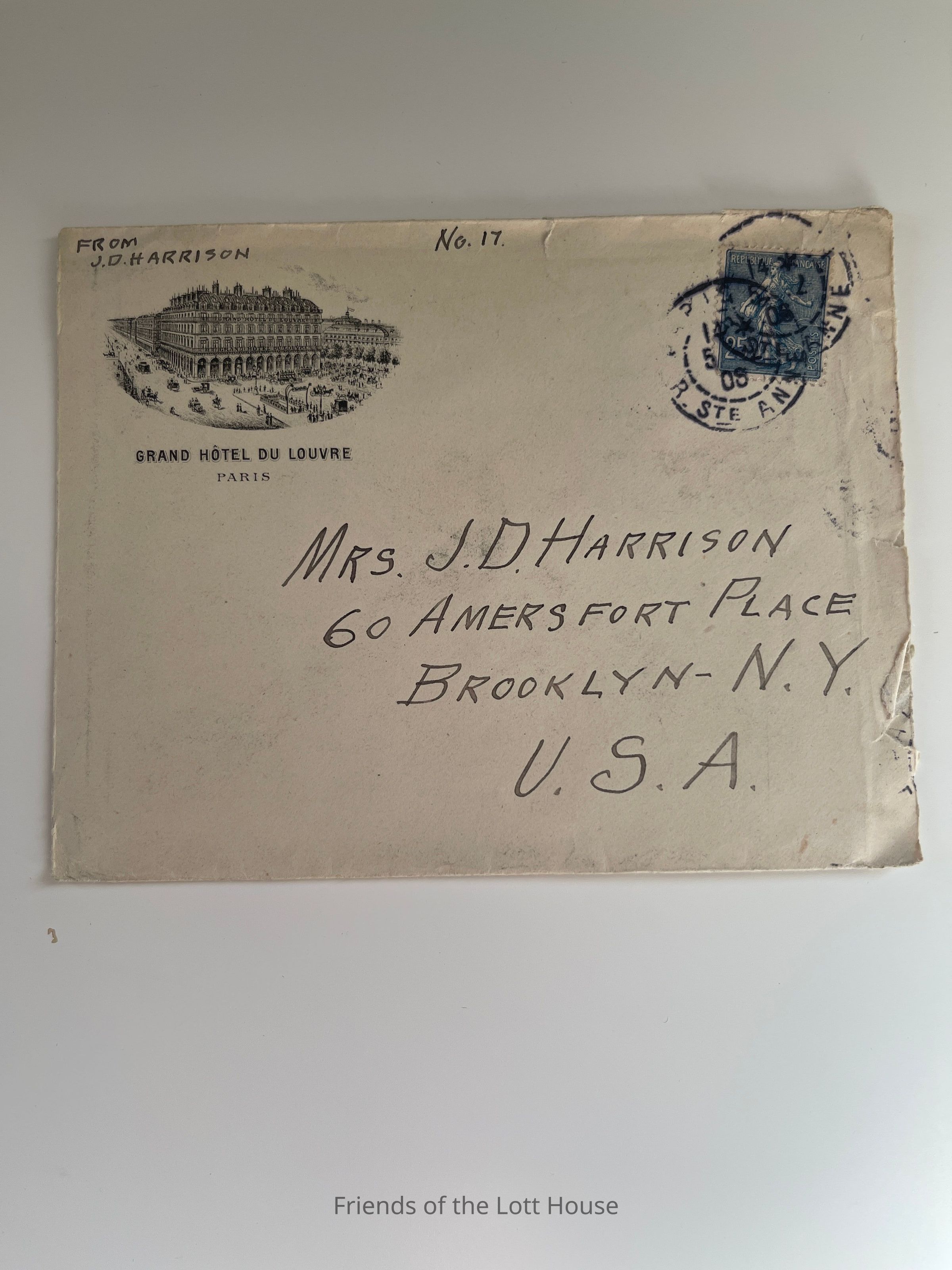 Letter to Mrs J D Harrison from JDH, Grant Hotel du Louvre, Paris, December 4, 1906Collection