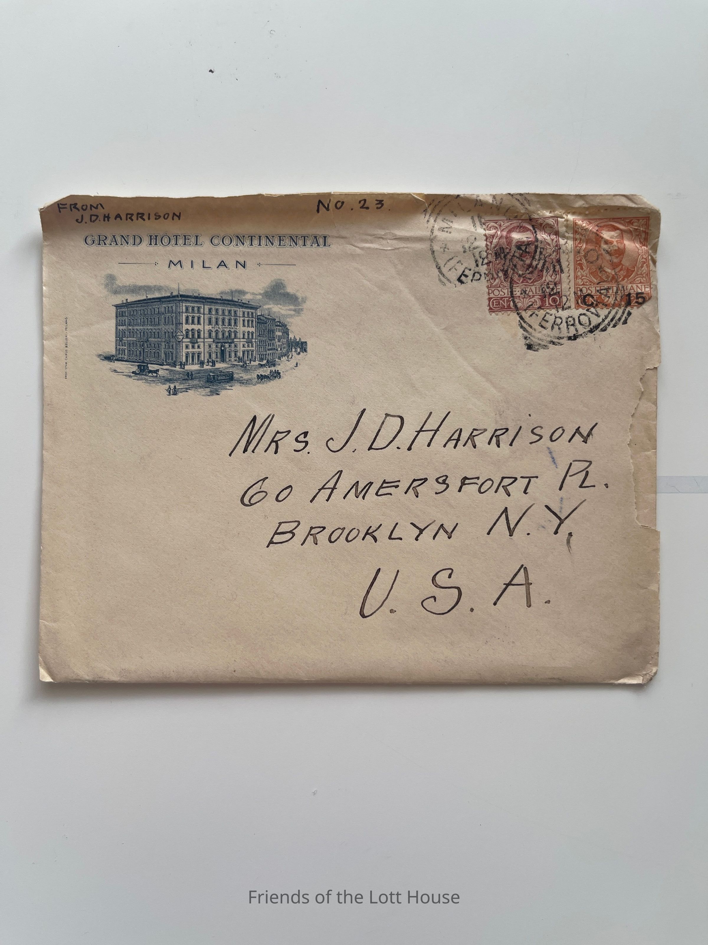 Letter to Mrs J D Harrison from JDH, Grand Hotel Continental, Milan, December 9, 1906Collection