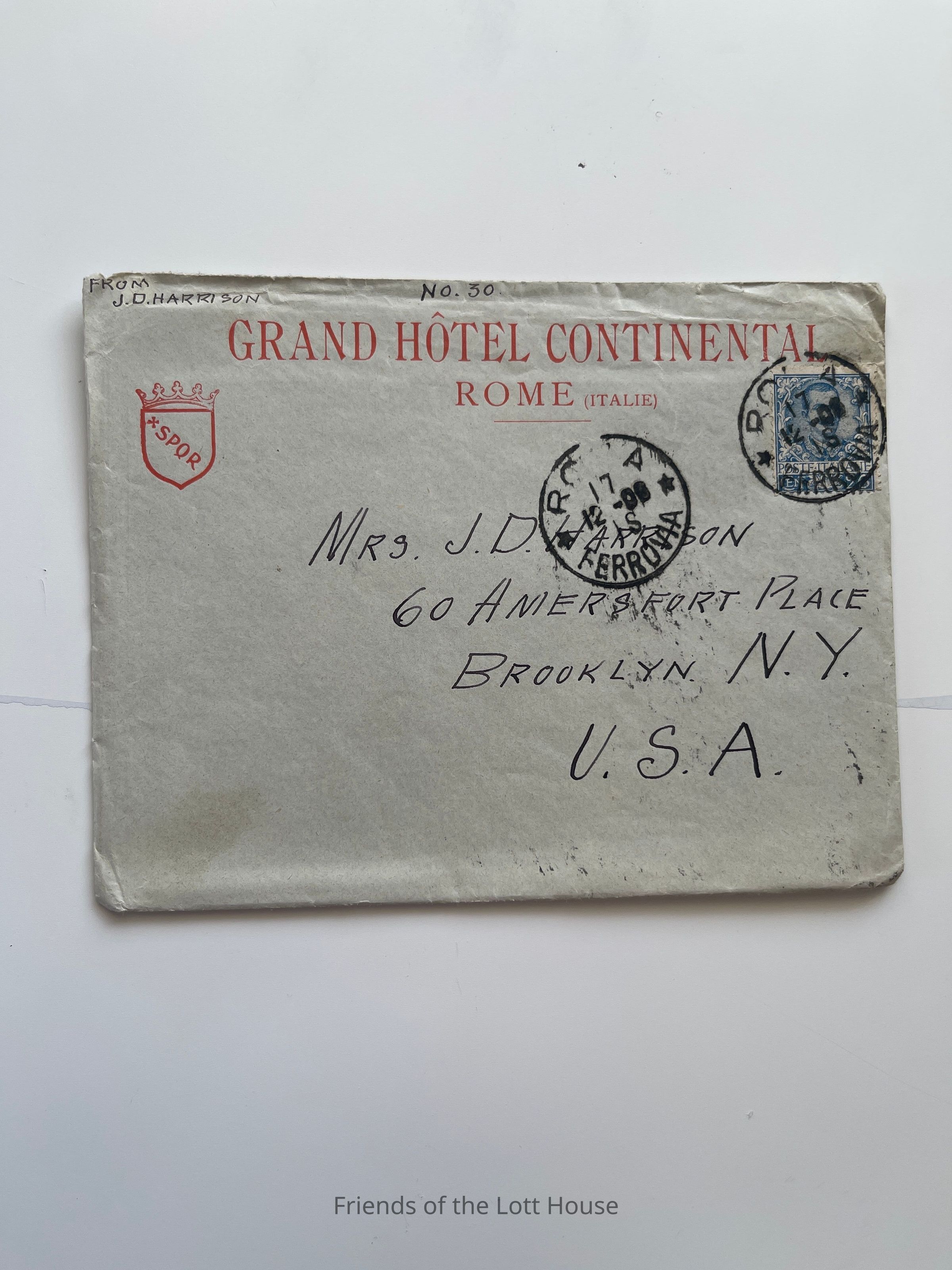 Letter to Mrs. J D Harrison from J D Harrison, Grand Hotel Continental, Rome Italy, Sunday December 16, 1906 and December 18, 1906 and booklet on the Roman catacombsCollection