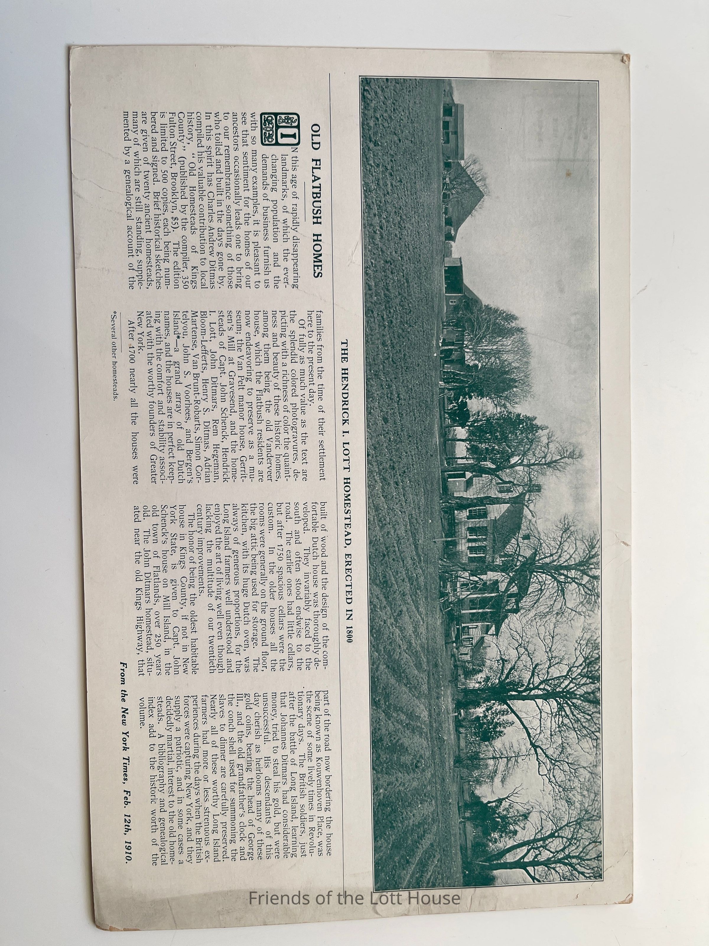 The Hendrick I. Lott House Homestead, 1800, from the New York Ties February 12, 1910Collection