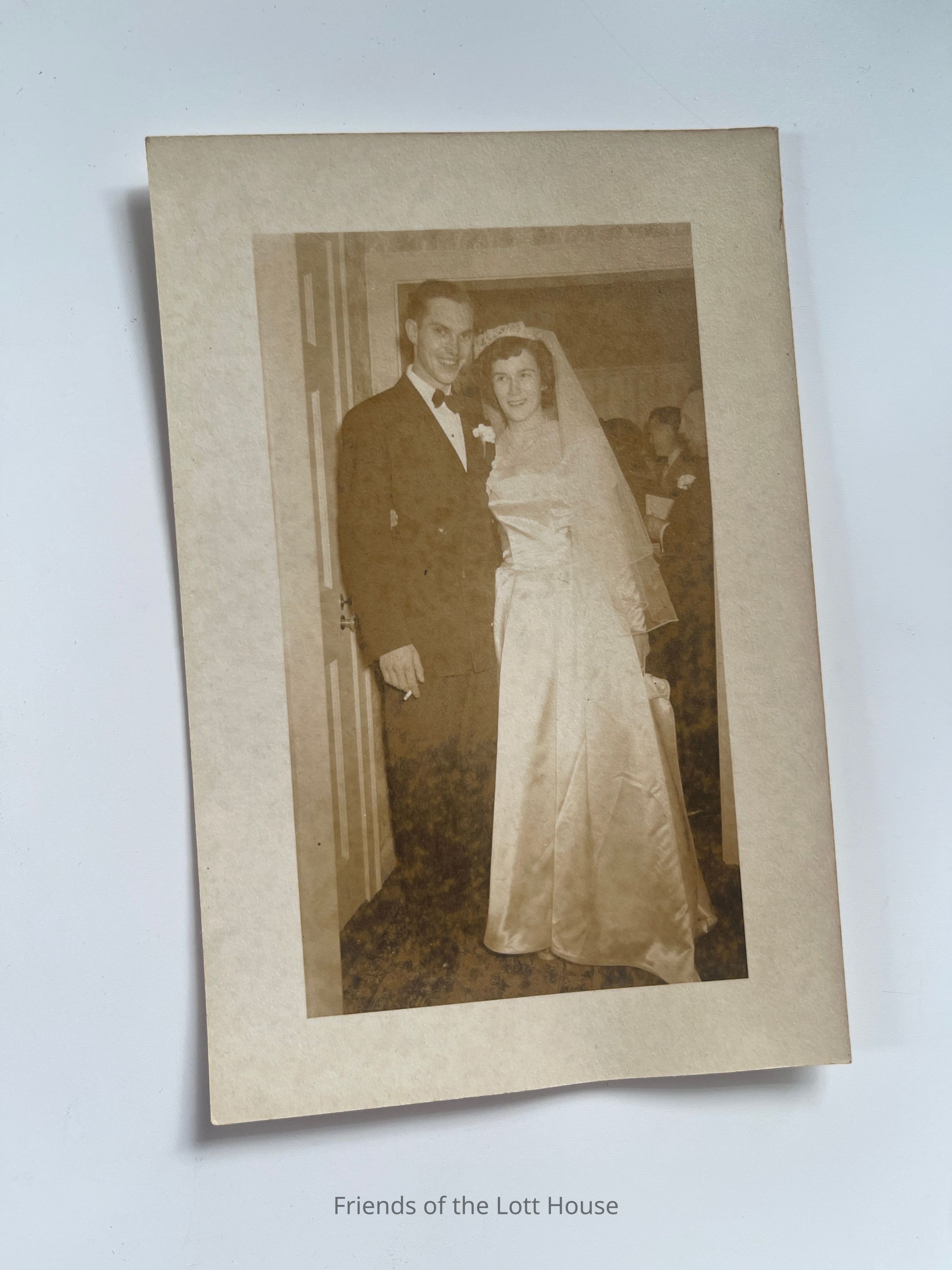Marion Grant Reid in her wedding dress next to her husbandContext