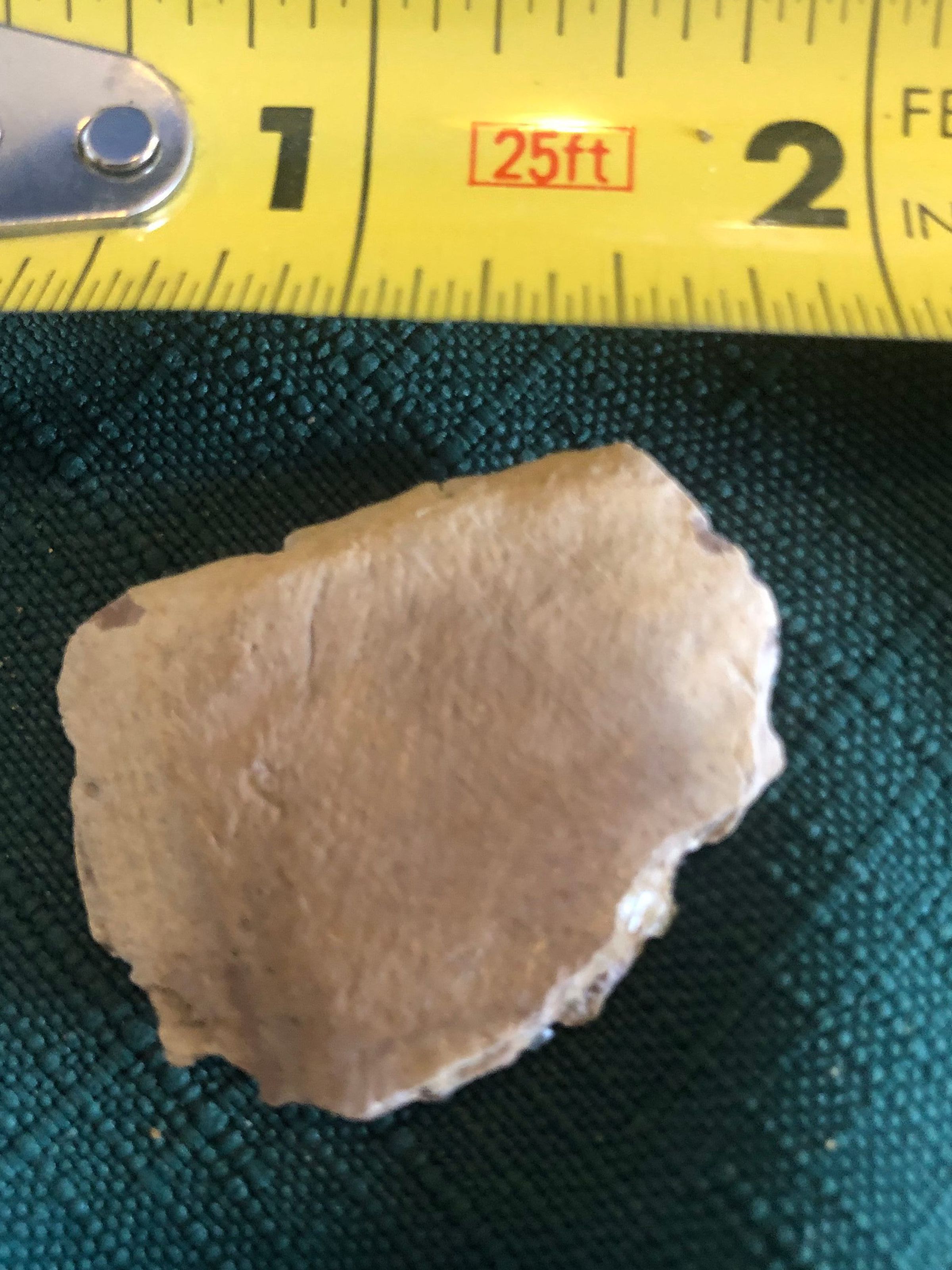 Typical crocodile scute, easily identified by the marking on the surface of the scute that, as Dr. Hiatt describes, has the appearance of a thin coat of pancake batter on the grill, ready to flip.