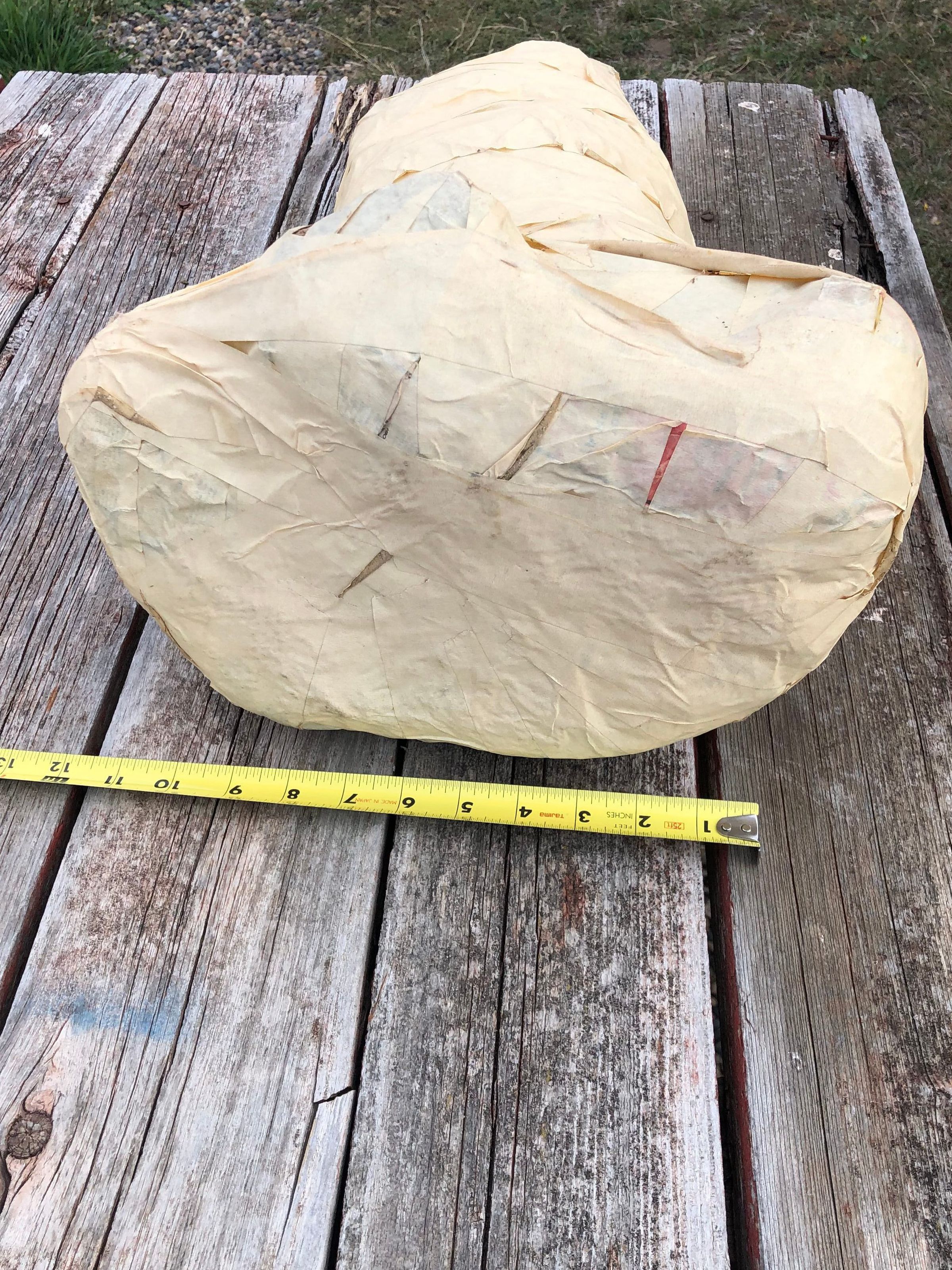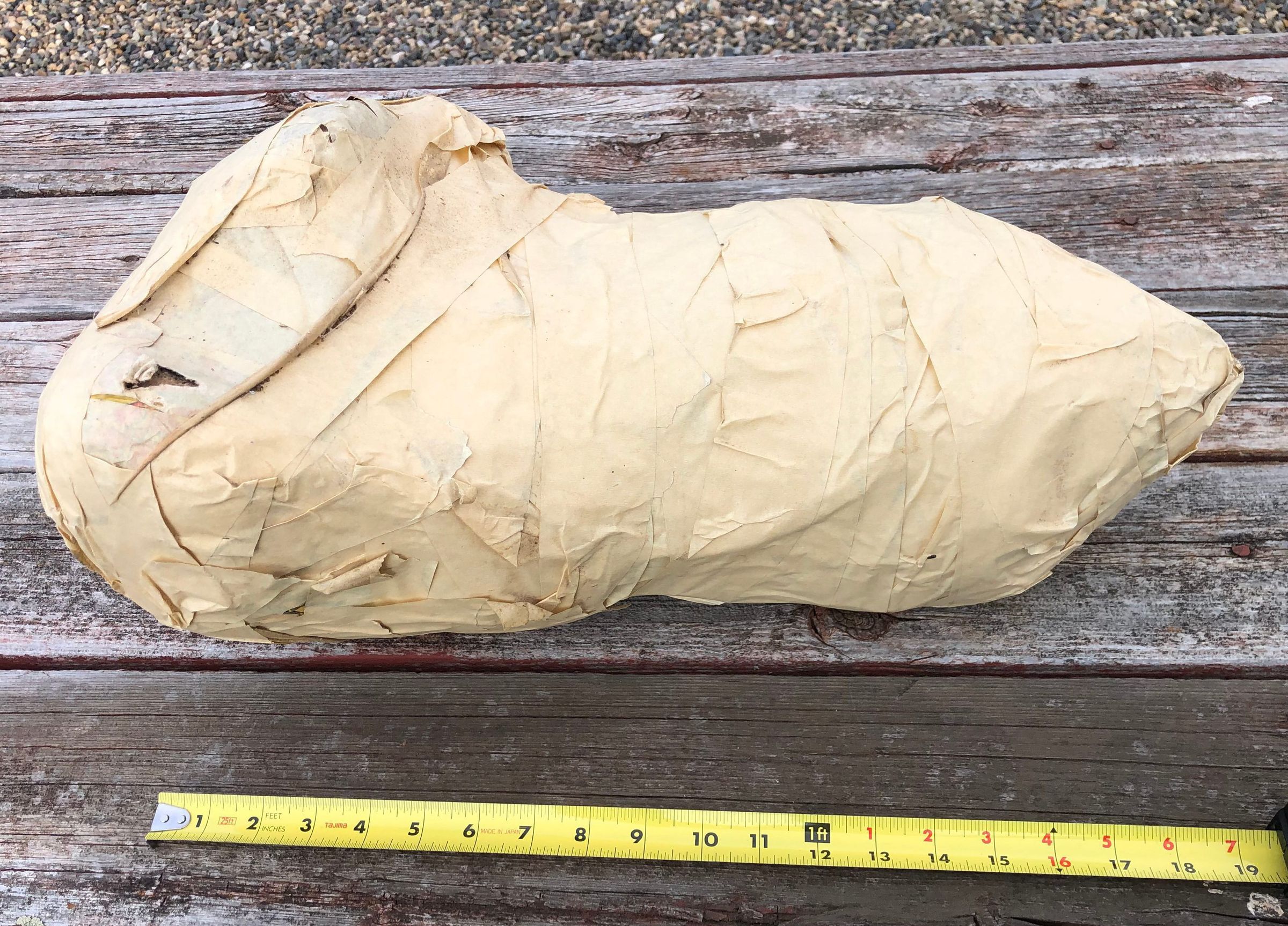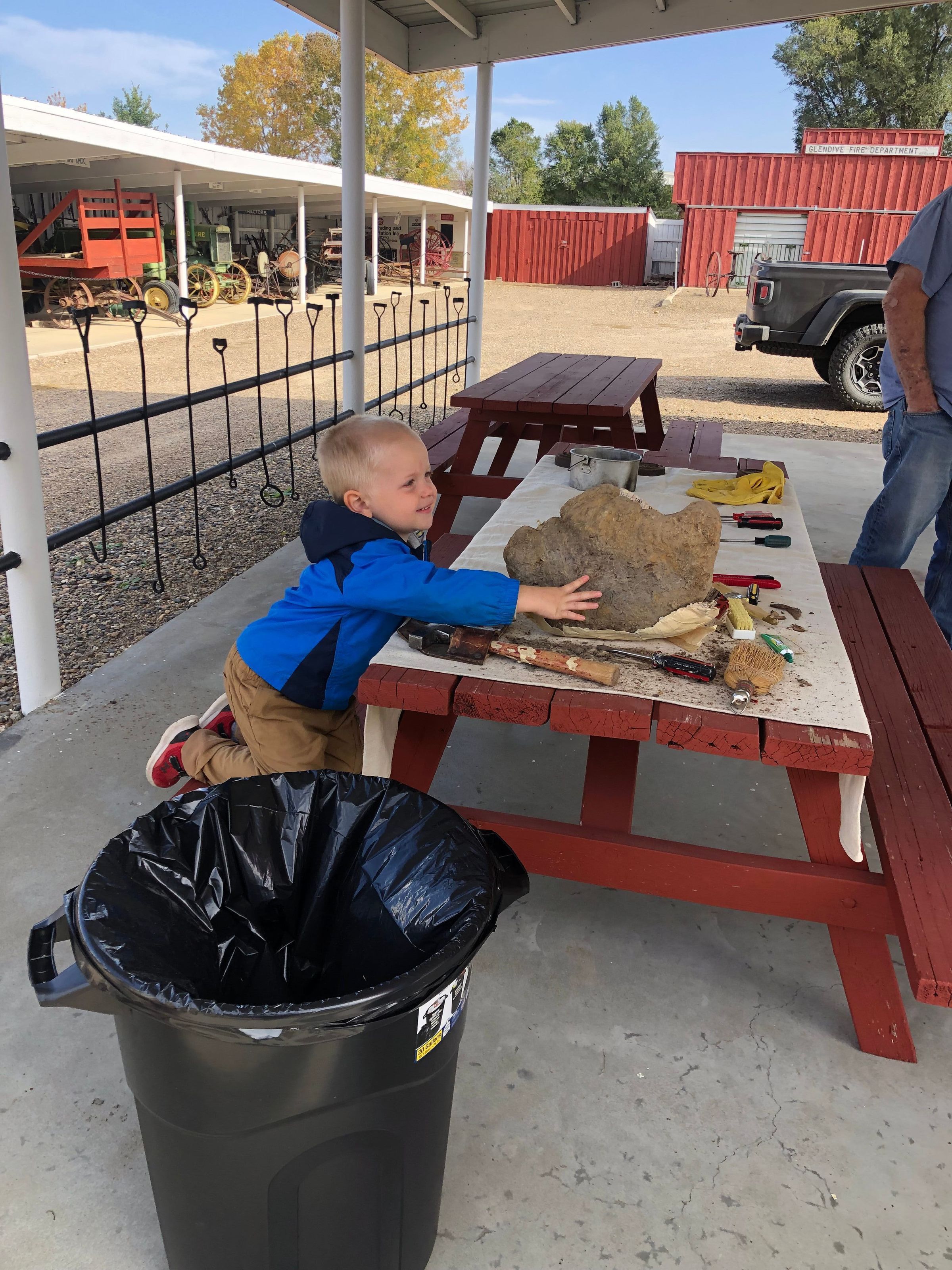 This fossil was excavated on Gregory Hagenston’s property in Glendive in the year 2001, give or take a few years. It had been stored in the Hagenston basement until donated to Frontier Gateway Museum. It is planned to be publicly unwrapped and prepared for display on National Fossil Day, October 11, 2023.