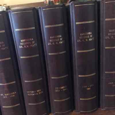 These binders of Makoshika records were donated to Gregory Hagenston by Bette Payton, the daughter of Dr. R. W. Hiatt. The information was used for the foundation of two books written by Gregory Hagenston — Greg and Doc, Two Souls Surrounded by Badlands (A Memoir of Adventure, Discovery, Anguish and Triumph). And the second book — Greg and Doc, Two Souls Surrounded by Badlands (Part II, Makoshika).