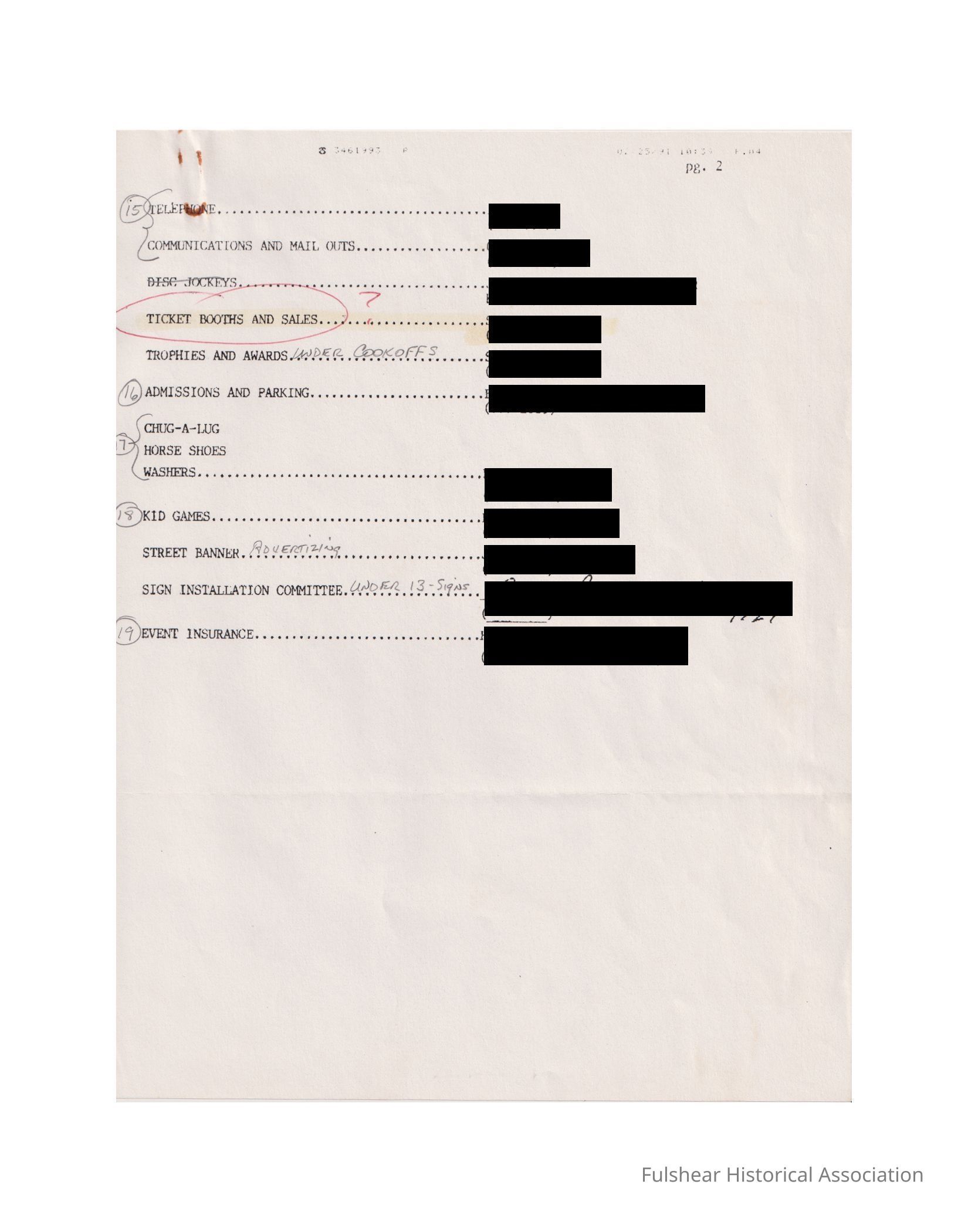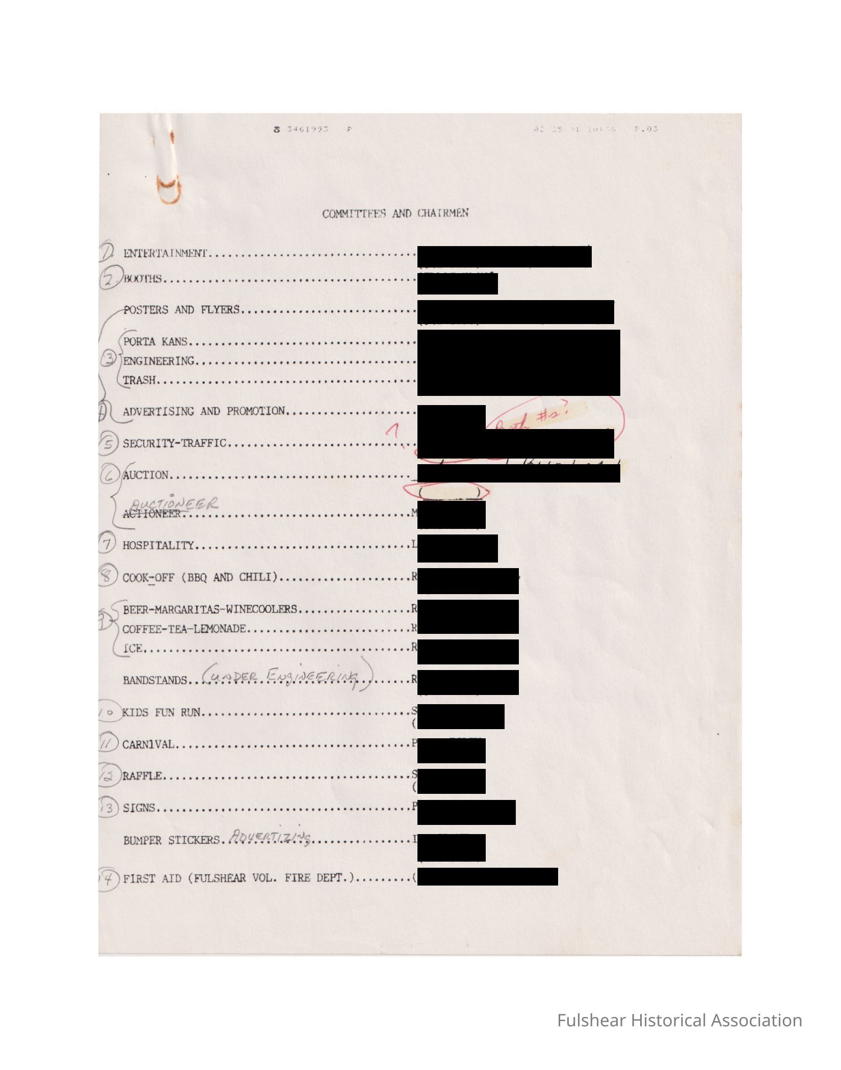 List of committees and chairmen for the 16th annual Fulshear Follies