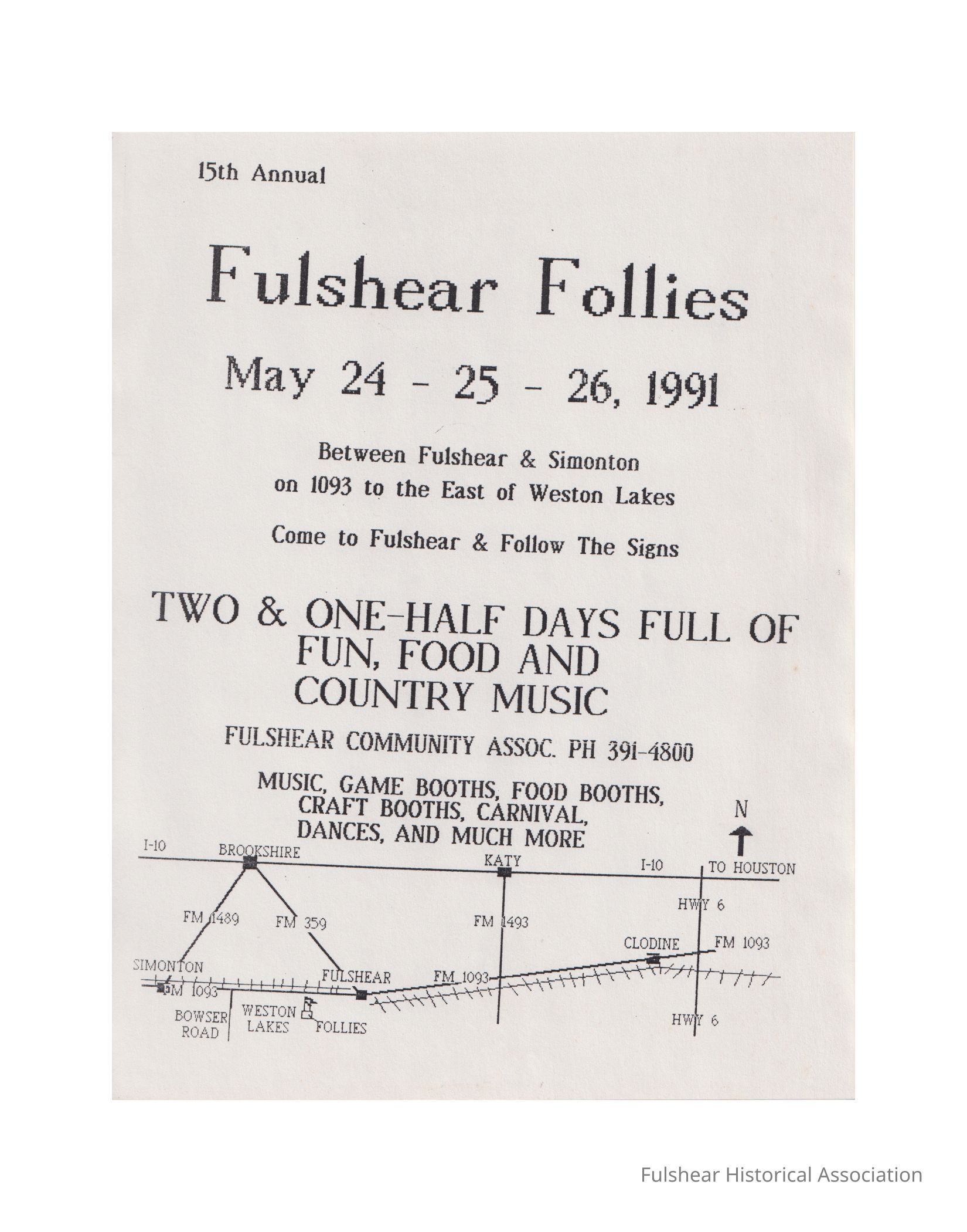 DIGITIZATION: This item was contributed for digitization by a community member and digitized by the Fulshear Historical Association (FHA). The digital image(s) provided here are the property of the FHA and are made available for non-commercial, research, educational, and informational purposes. COPYRIGHT: The FHA does not own or maintain the physical item featured in the provided digital image(s). The copyright of the original work remains with the creator or rights holder. Any reproduction, distribution, or commercial use may require permission from the original copyright holder. PRIVACY: The Fulshear Historical Association (FHA) endeavors to respect individual privacy in presenting community-sourced items. Personal information (such as addresses, phone numbers, or other identifiers) may be redacted from digital surrogates when appropriate.