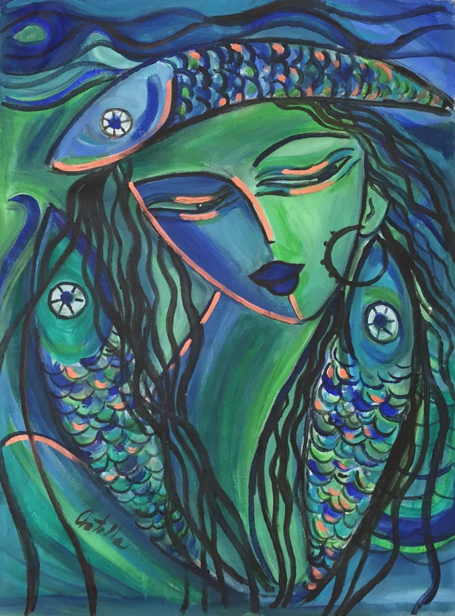 An untitled painting by Cuban artist Monika Looria (Antella) depicts a woman face and neck surrounded by three fish, executed in blue, green, metallic bronze with black outlines. Spotted by the Gadsden Arts Executive Director Grace Robinson on the museum’‚s trip to Havana, Cuba, in 2015 at an art market, Grace asked a friend visiting tin the following months to try and find the piece for her. Sure enough, the piece was found, purchased, and brought back to Quincy, and presented to the Collection Committee. The Committee and Board of Directors felt it’‚s subject matter and technique were similar to works already in the Collection by Thornton Dial, Sr. and Cuban artist José Fuster.Acquisition