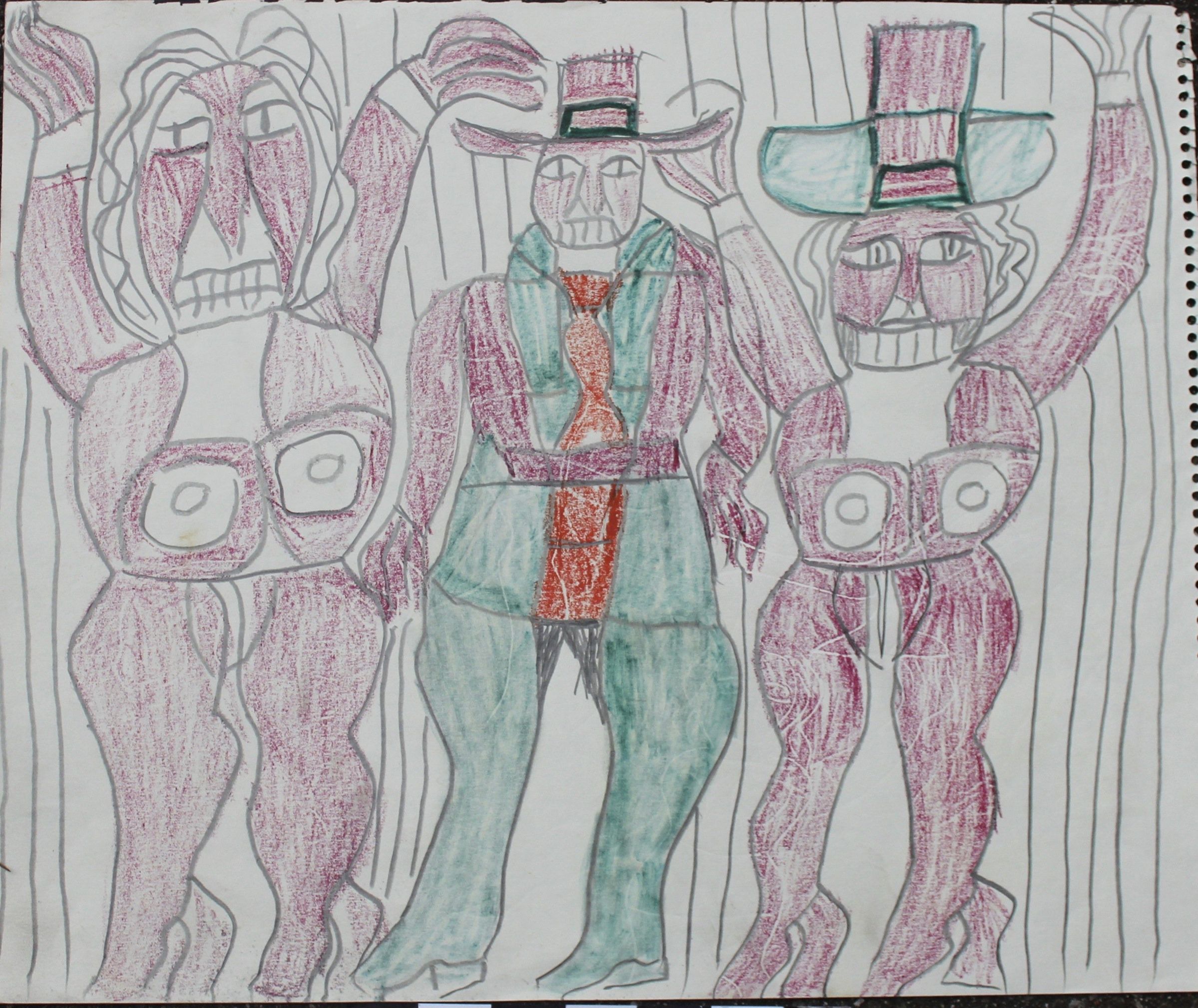 Henry Speller grew up in rural Mississippi and worked for his family's sharecropping business until moving to Memphis, Tennessee, around 1940. Speller always had an affinity for drawing, but it wasn't until he retired in the mid-1960s that he was able to concentrate on his artwork full-time. He married Georgia Vergas in 1964, a woman who also enjoyed drawing, and the couple encouraged each other's passion for art. He is best known for his long-legged, fancily dressed women and men, often partially dressed in vivid colors and asymmetrical patterns. Speller almost exclusively drew on large pieces of paper with graphite pencil, colored pencils and crayon. Although he had a hard life, Speller never complained and took solace in his drawing. Toward the end of his life, Speller suffered from many health problems and died in 1997 in a Memphis nursing home.Created By