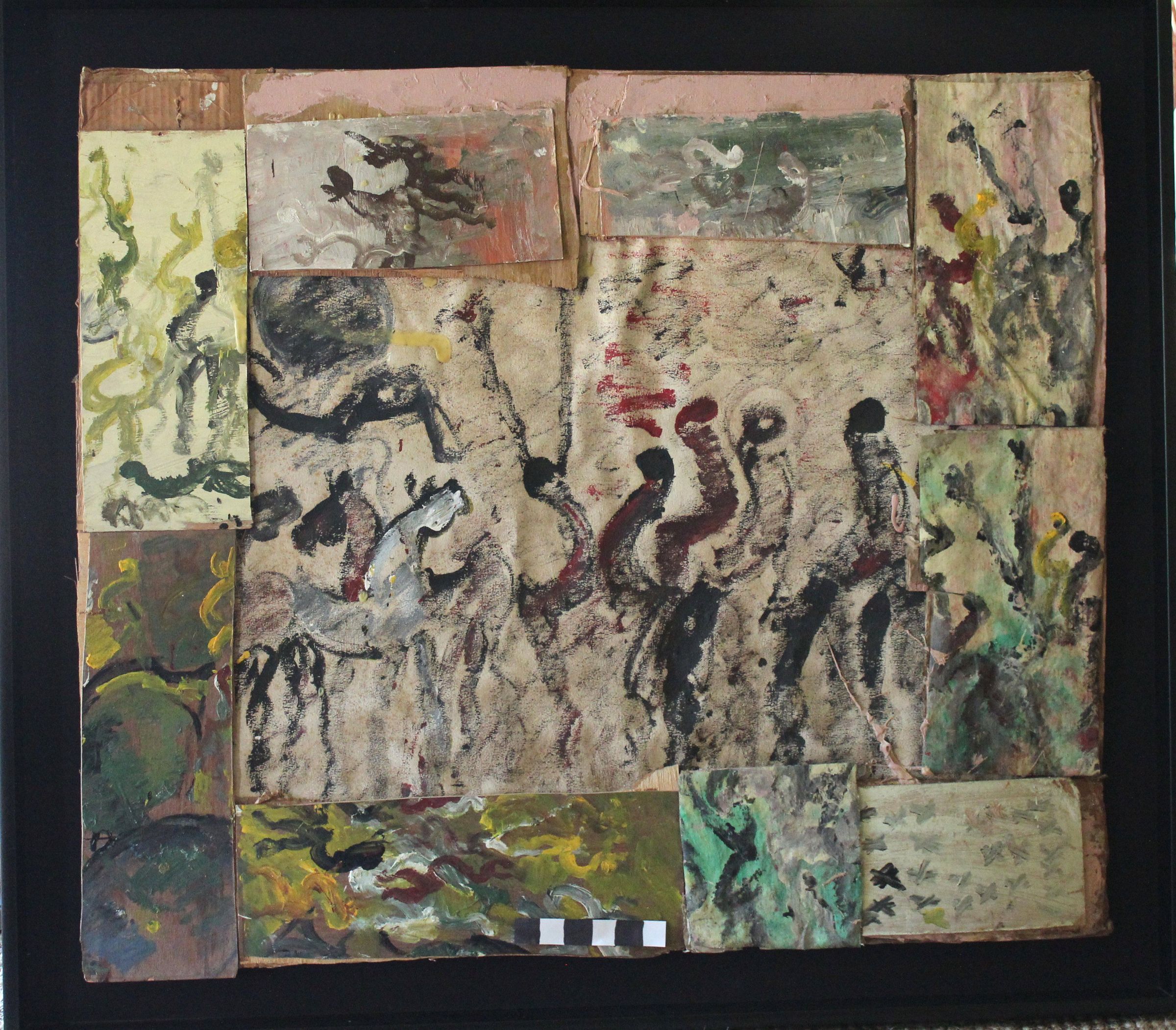Purvis Young's work is often marked by a combination of painted surfaces assembled together in an urgent and spontaneous style of collage, as evidenced in the technique he used for Reaches for Better Time. The painting's different surfaces are covered with images of wild horses, one of several representational figures Young used to symbolize life's many experiences. Specifically, horses came to represent the hope associated with freedom of escaping the conditions of a hard, urban environment.Artwork Details