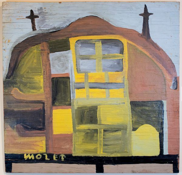 Mose Tolliver (1920-2006) Born in Alabama in 1920, Tolliver claimed to have been creating artwork his entire life. His images are created on house-paint encrusted pieces of plywood and include sexually explicit images of women, self-portraits, buses, birds, snakes, and fruit. He would attach these images to the tab of a soda or beer can as a hanging device. As the years progressed, Tolliver became less dexterous and began to train his children to carry out his works.