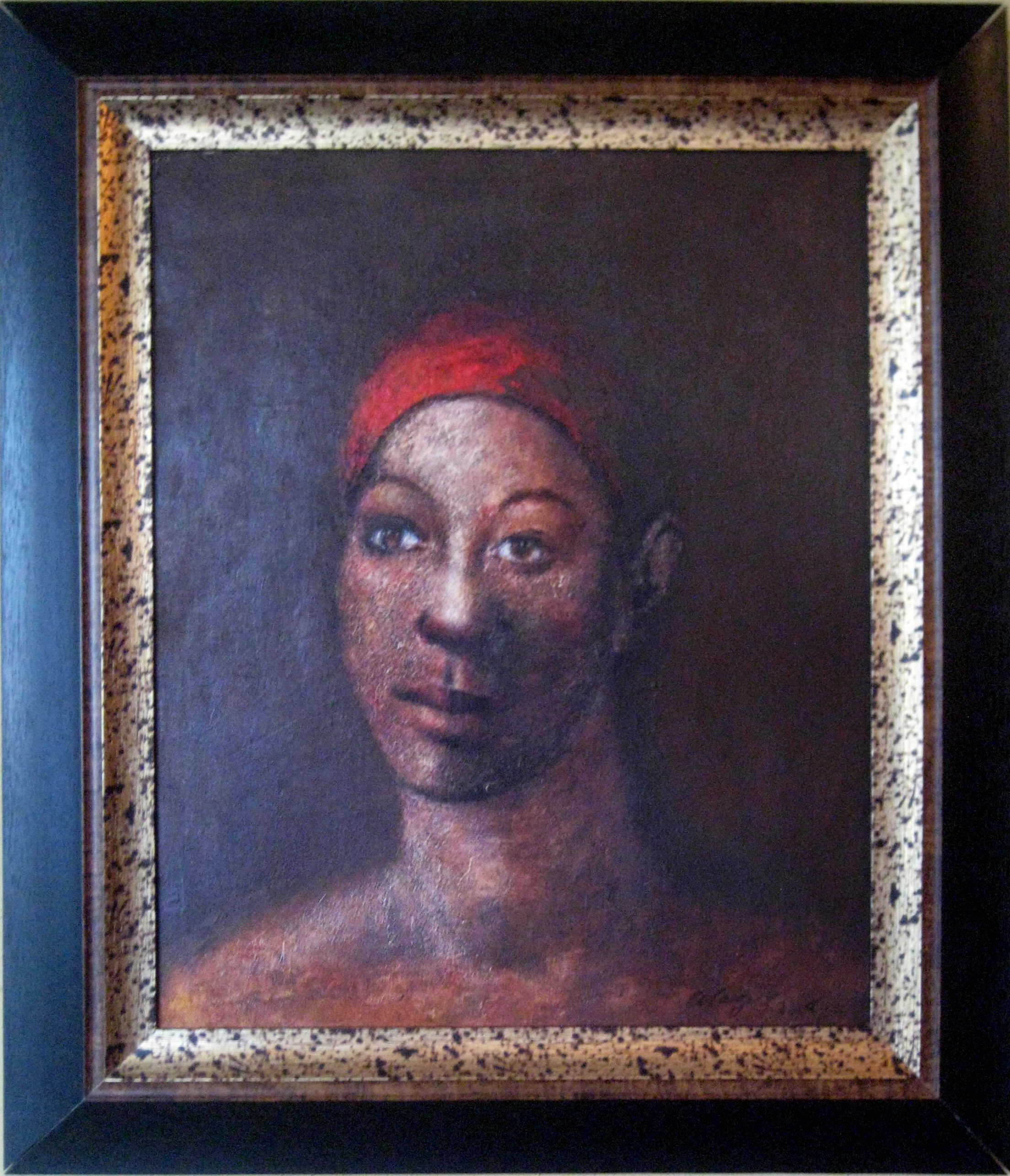 Woman with Bright Red Scarf