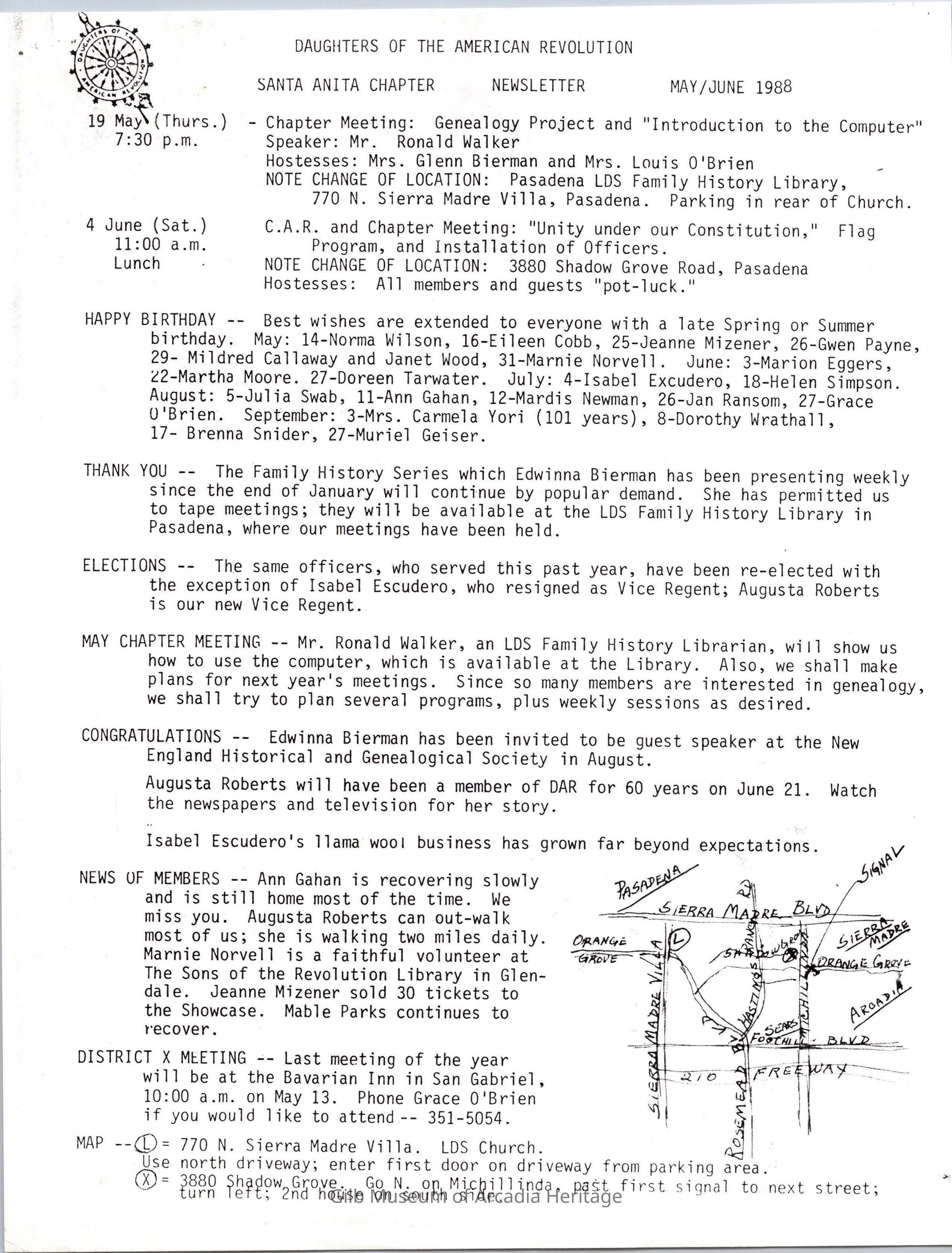 DAR: Santa Anita Chapter NSDAR May/June 1988 NewsletterCollection
