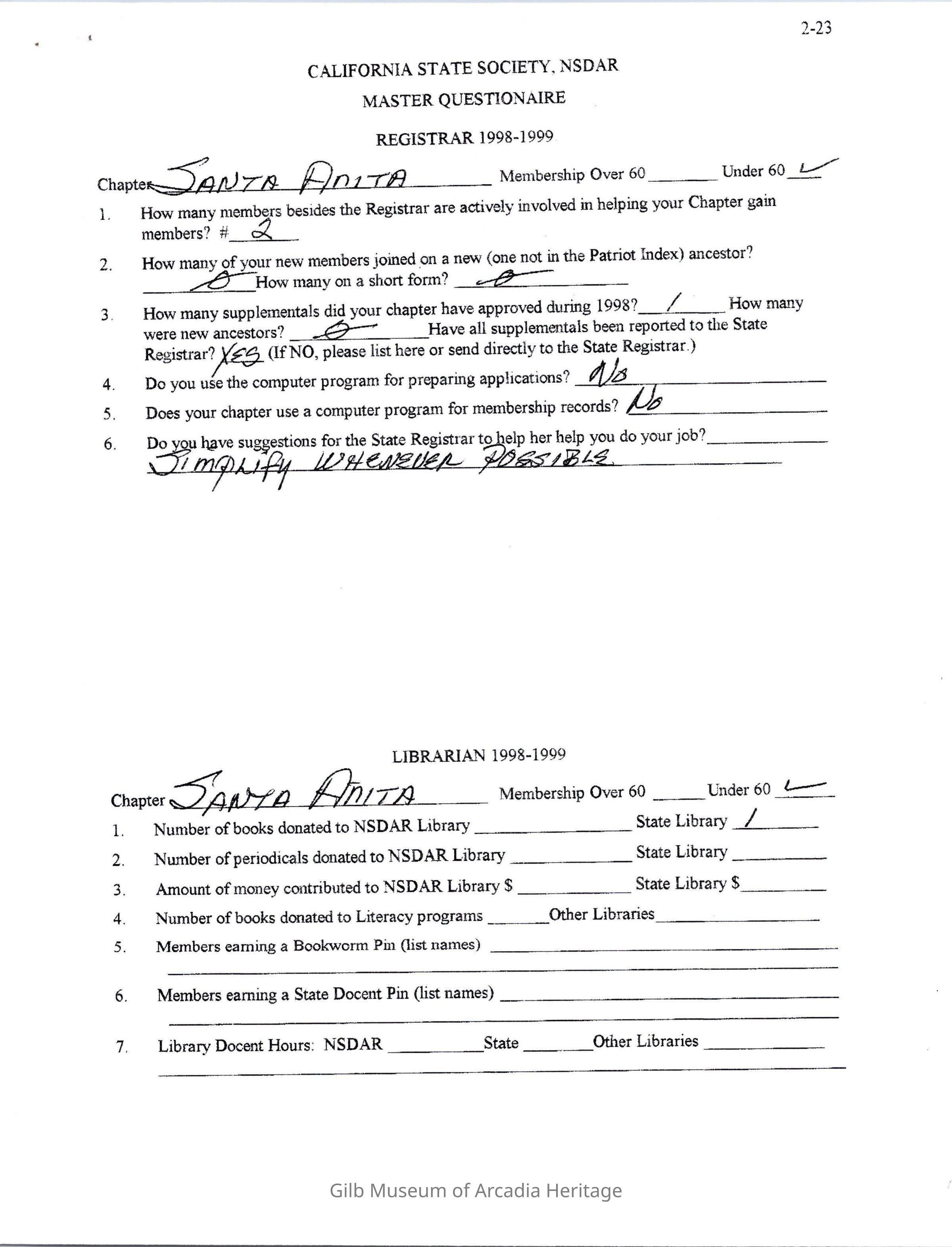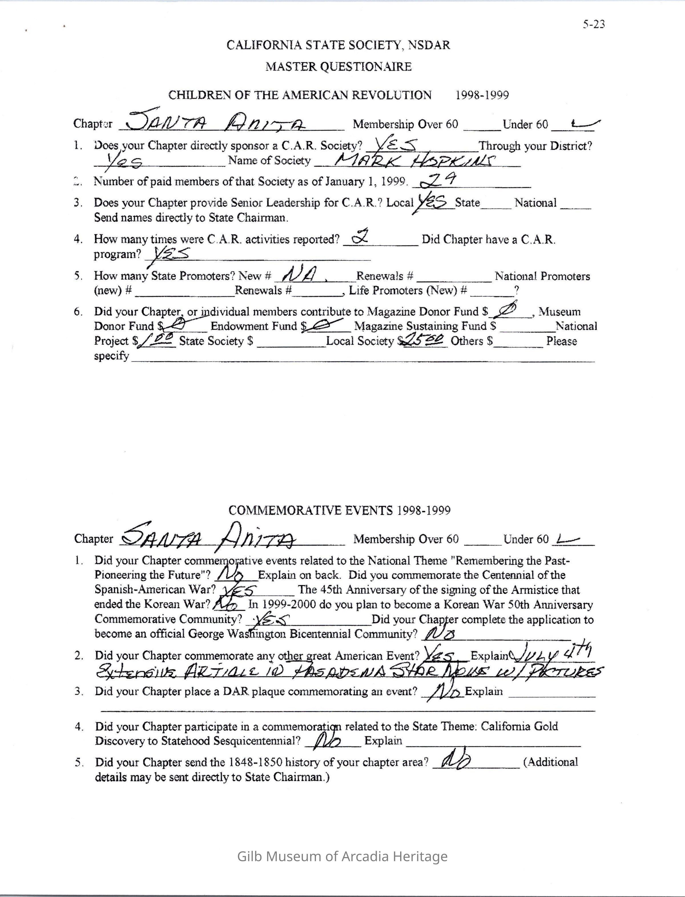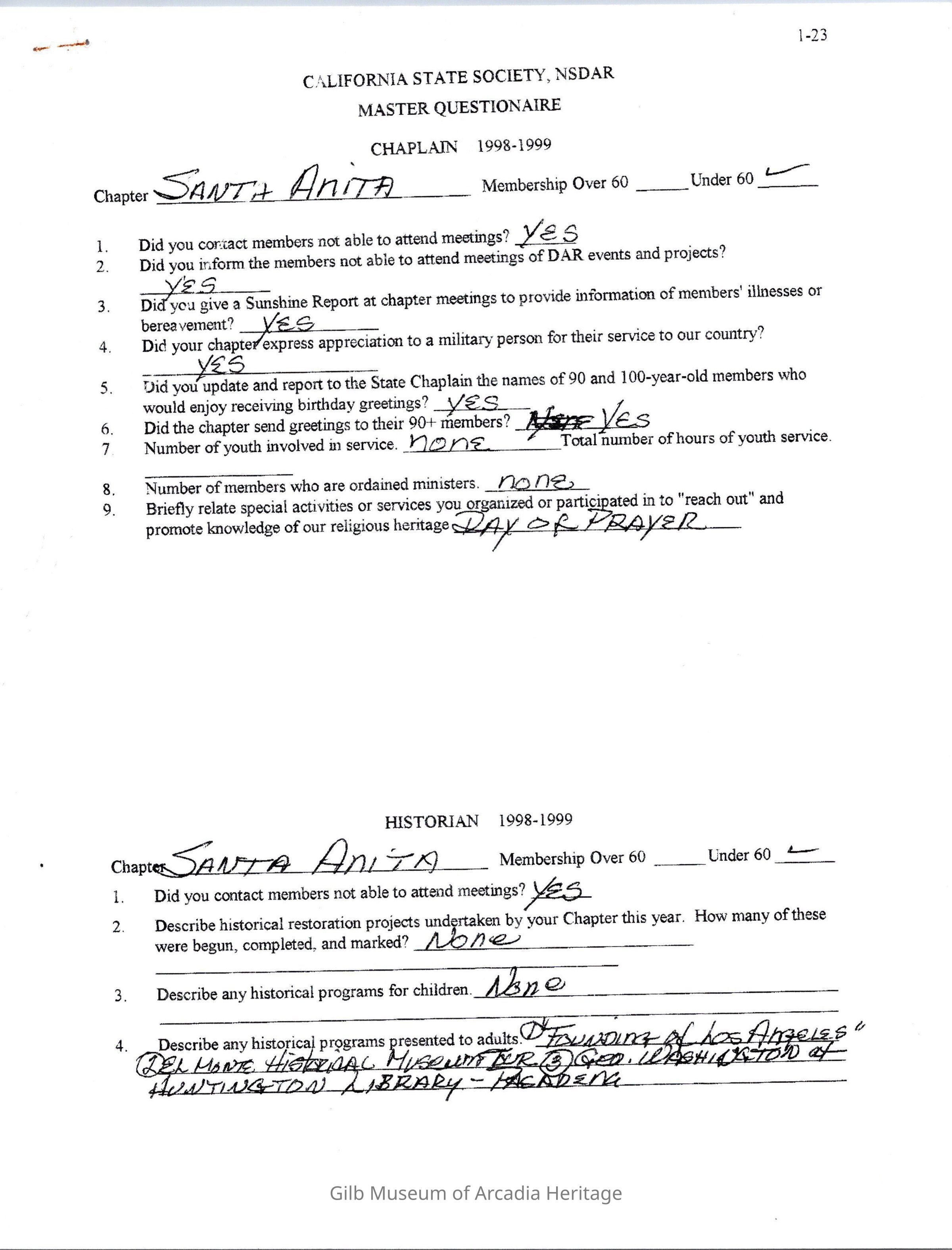 Daughters of American Revolution Santa Anita Chapter
