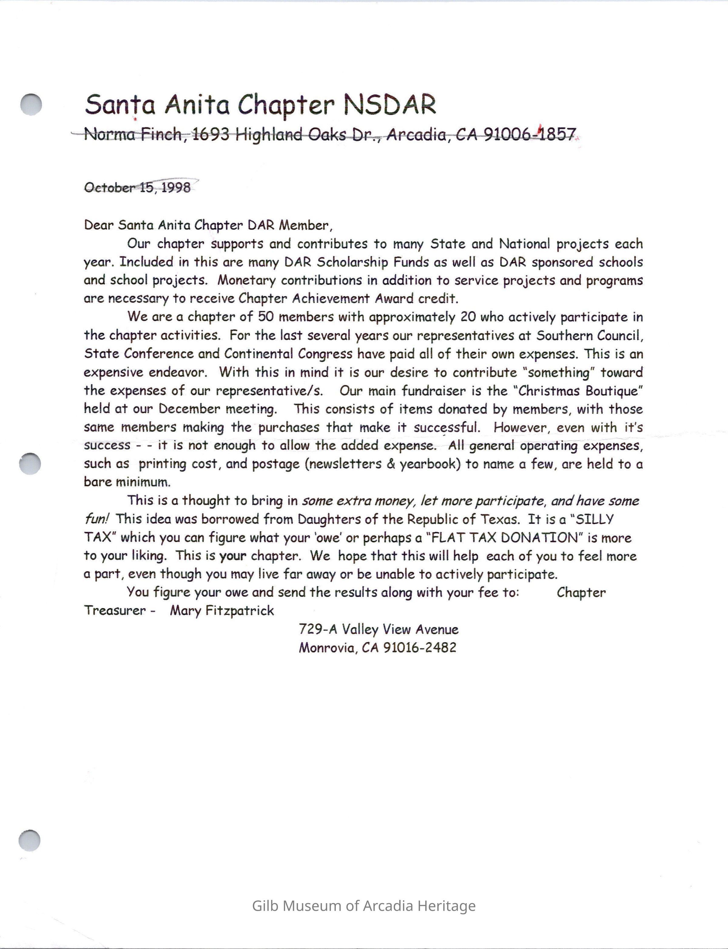 DAR: Santa Anita Chapter NSDAR Contribution NewsletterCollection